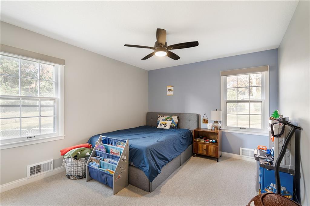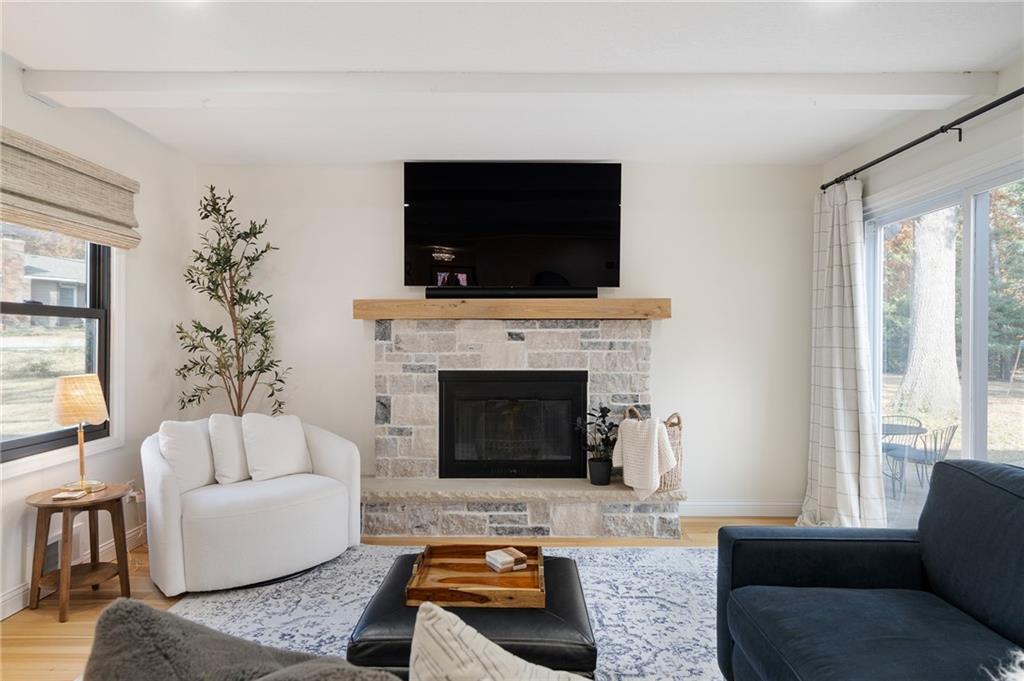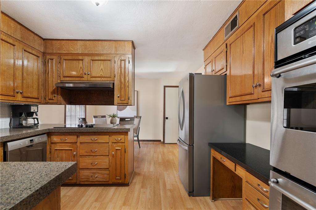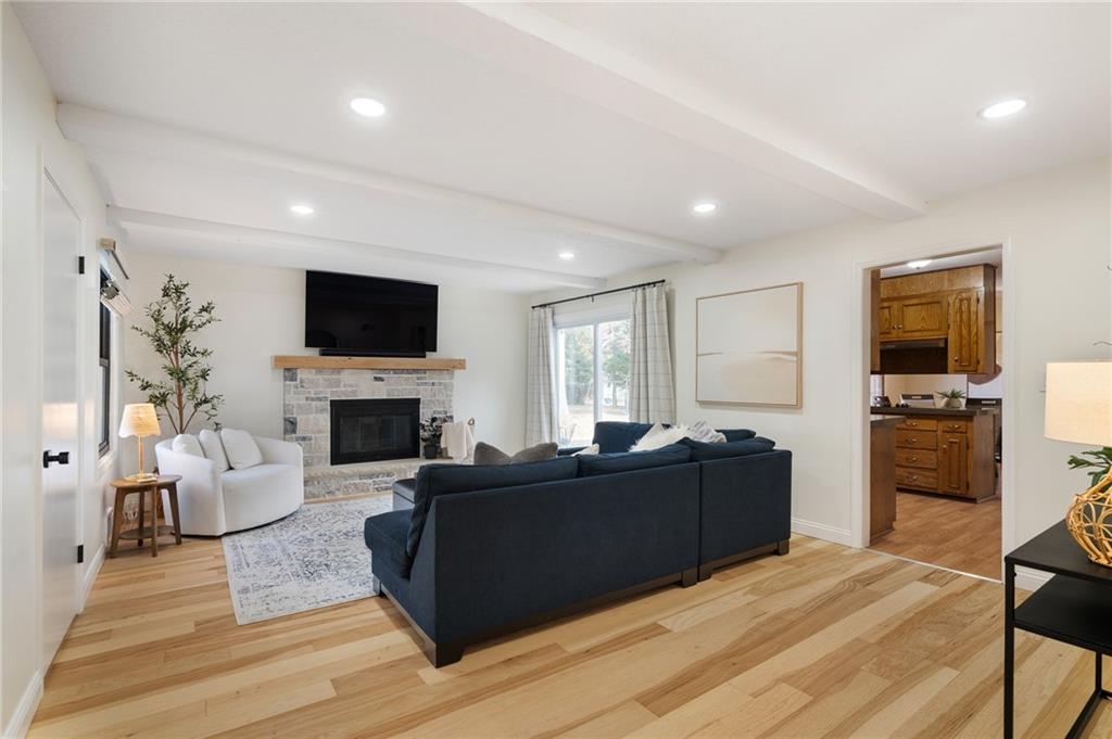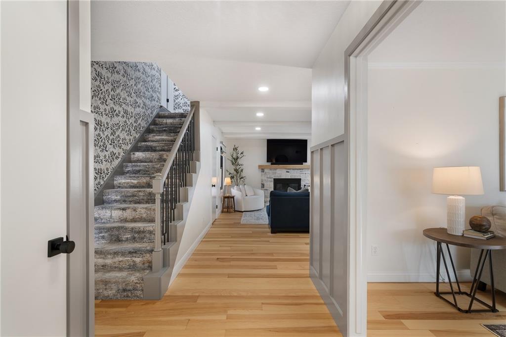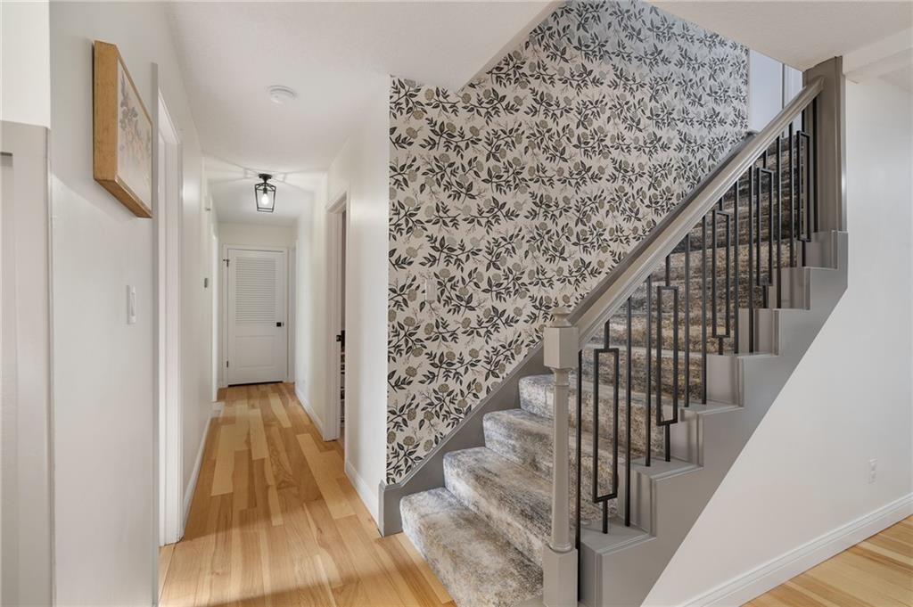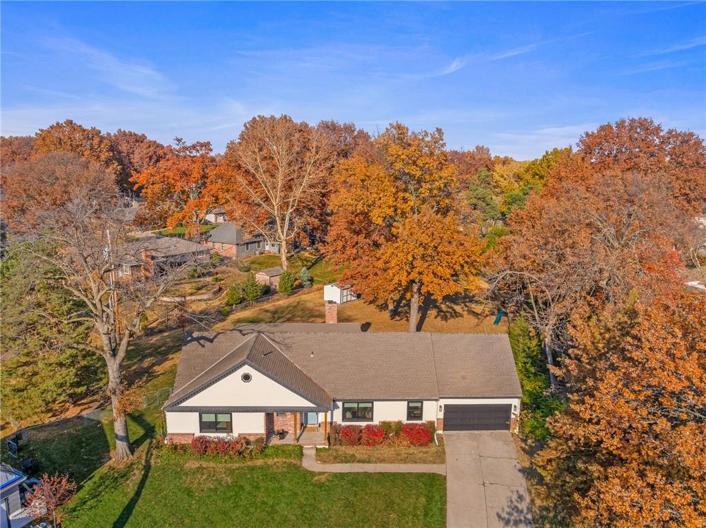 Stunning ranch/1.5 story in sought after Pinehurst subdivision. Welcome to this 5bd/3.1ba/2 car garage main level living home nestled on a quiet cul-de-sac. Light, bright and ah-mazing! Sitting on over a 1/2 acre lot, this park-like property is perfect for quiet family nights or loud exciting gatherings w/friends. Step inside to new engineered wood floors (gorgeous) in entry, formal living and dining room, family room and hallway to bedrooms! New carpet in all bedrooms (no animals or shoes have walked on the carpets:); staircase features designer carpet leading up to 2nd level adding a touch of luxury to the home's updated style. New interior/exterior paint, new Renewal by Anderson windows on front of house (adds so much natural light), new windows in family room, new light fixtures, new canned lights in family room, textured ceilings thru-out (not popcorn!) and gorgeous gas fireplace. Kitchen boasts granite counters, stainless steel appliances, double oven, and eat-in area. Elegant master ensuite w/sliding door, remodeled shower and new gorgeous vanity; laundry room, two generous-sized bedrooms on main level and hall bath complete the main level. Upstairs you'll find two large bedrooms w/walk-in closets and jack and jill bath, perfect for guest bedrooms, office, craft room, play room all overlooking the gorgeous backyard park! This home continues to impress w/epoxy-coated floors in lower level recreation room and new half bath. Tons of storage in lower level. Two car garage has epoxy-coated floor, too! Easy access to highways, close to award-winning Shawnee Mission schools, shopping, restaurants and more! See it before it's gone. **All information deem reliable but not guaranteed. Buyer and buyer's agent to verify all information, including measurements, during inspection period.**