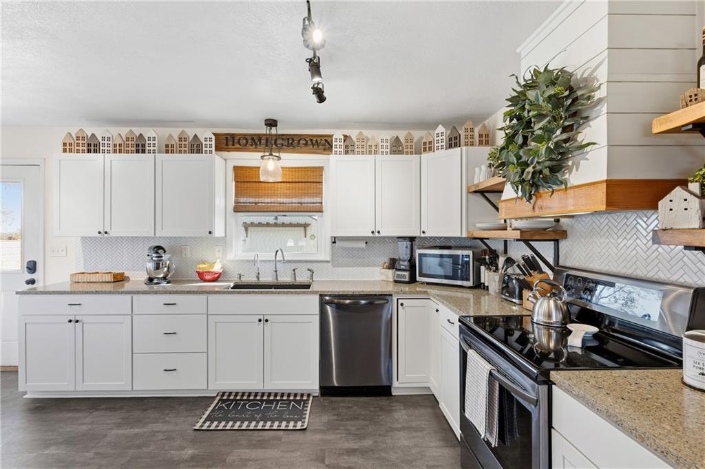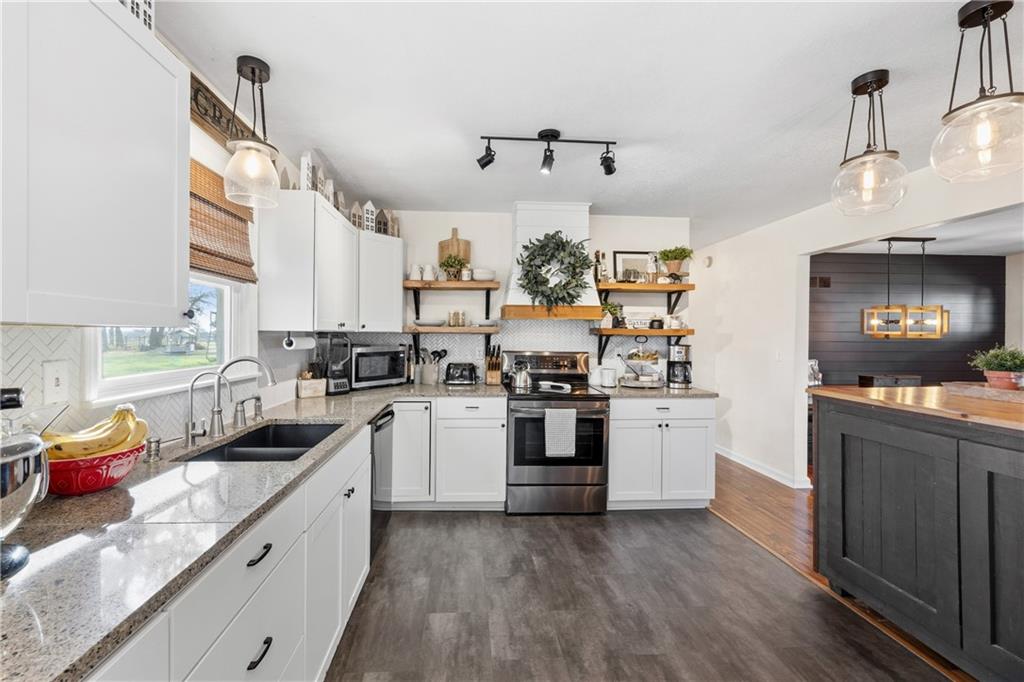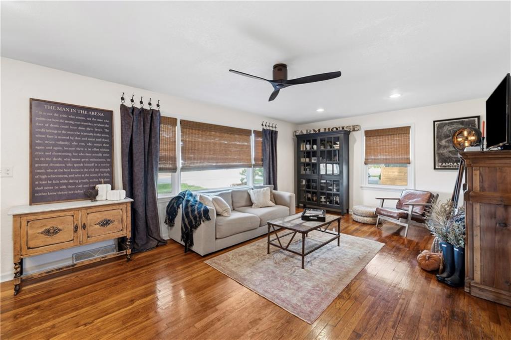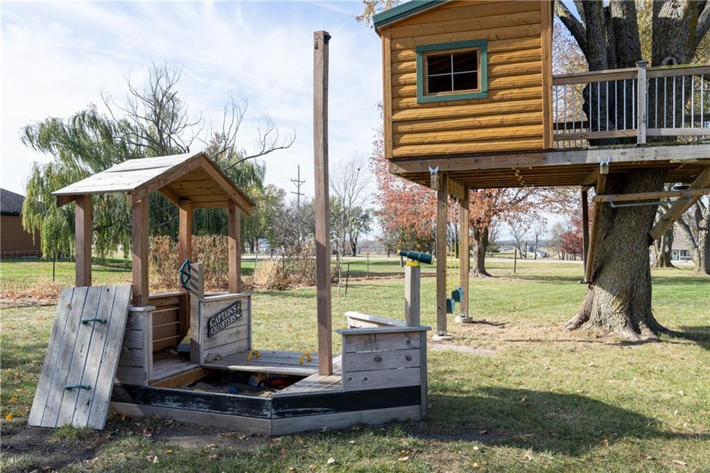 Freshly updated ranch home in the Louisburg School District with a bright, open layout. Situated on paved frontage and just a short drive to Hwy 69, making Overland Park easily accessible. The lot is shaded by mature trees and offers a standout backyard setup, including a custom-built tree house with a zip line and a boat themed sand play area, an outdoor space designed for fun and imagination. Move-in ready and set up for easy living!