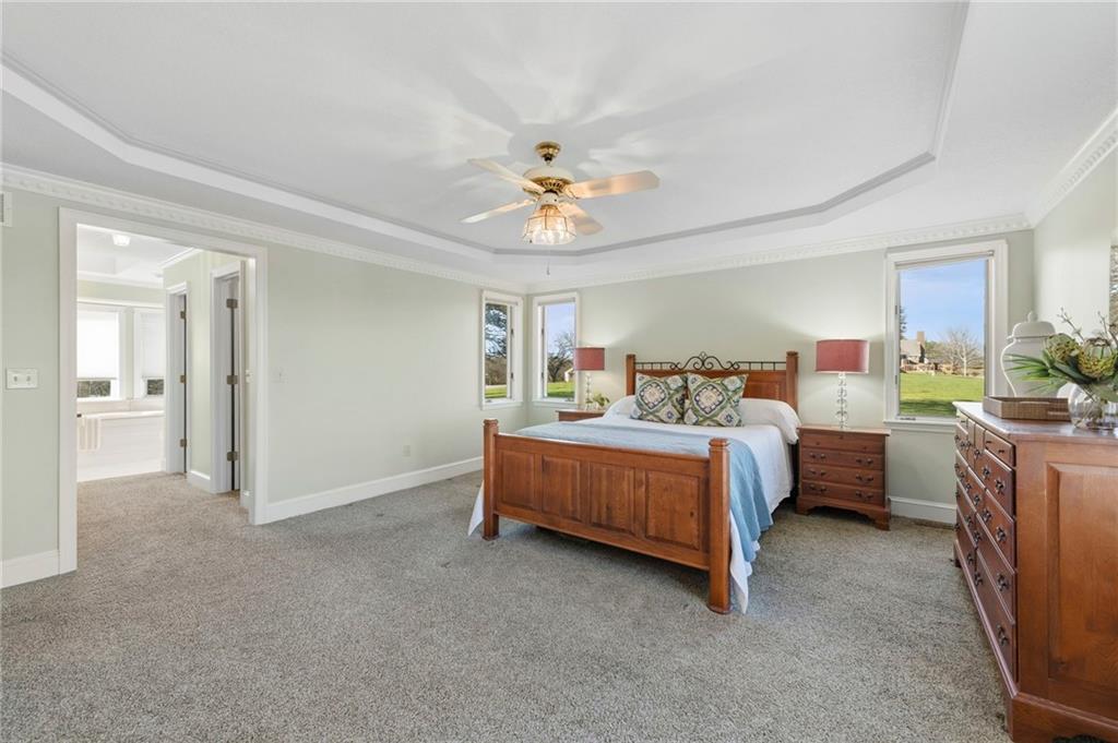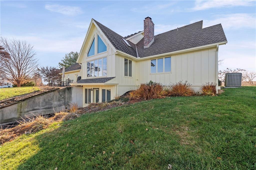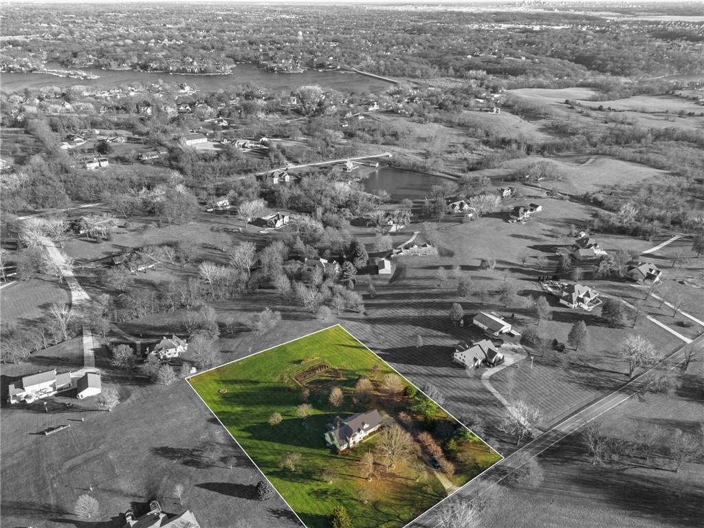 If you’ve been waiting for a home that truly stands apart, this one delivers. Set on nearly 3 serene acres in Weatherby Highlands, tucked inside unincorporated Platte County, this 1.5-story offers the privacy of country living with the convenience of the city within minutes in all directions. The great room steals the show with grand vaulted ceilings with rich wood beam accents, skylights, and a soaring wall of windows overlooking your land. Enjoy a glass of wine with friends gathered around the fire burning in the brick fireplace of the great room. The updated kitchen features hardwood floors, painted cabinets, coffered ceiling, granite counters, island with gas cooktop, generous pantry, and an inviting breakfast area wrapped in natural light and overlooking the patio. Formal dining and main-level laundry make everyday living easy. Your main-floor primary suite is spacious, filled with natural light and offers a sitting area in front of the private fireplace. The primary bath features double walk-in closets, dual sinks, and a jetted tub surrounded by natural light. The 2nd level overlooks the great room below, and offers 3 large bedrooms, 2 full baths, and a loft with custom built-ins that work beautifully as a library or gathering area. The unfinished walkout basement offers incredible potential. With a brick wood-burning fireplace already in place, this level is primed for a future media room, game area, or guest suite. Outside, the property shines with open lawn space, fruit trees, bluebird houses, and a garden full of established strawberries. It’s a peaceful setting you rarely find this close to Kansas City. This property fulfills the desire to escape city life and settle into the luxury of this home and the joy of having a few acres of serenity. This is the kind of home that makes buyers stop scrolling and start dreaming. This property is within 15 minutes of KCI airport, Zona Rosa and The Legends.