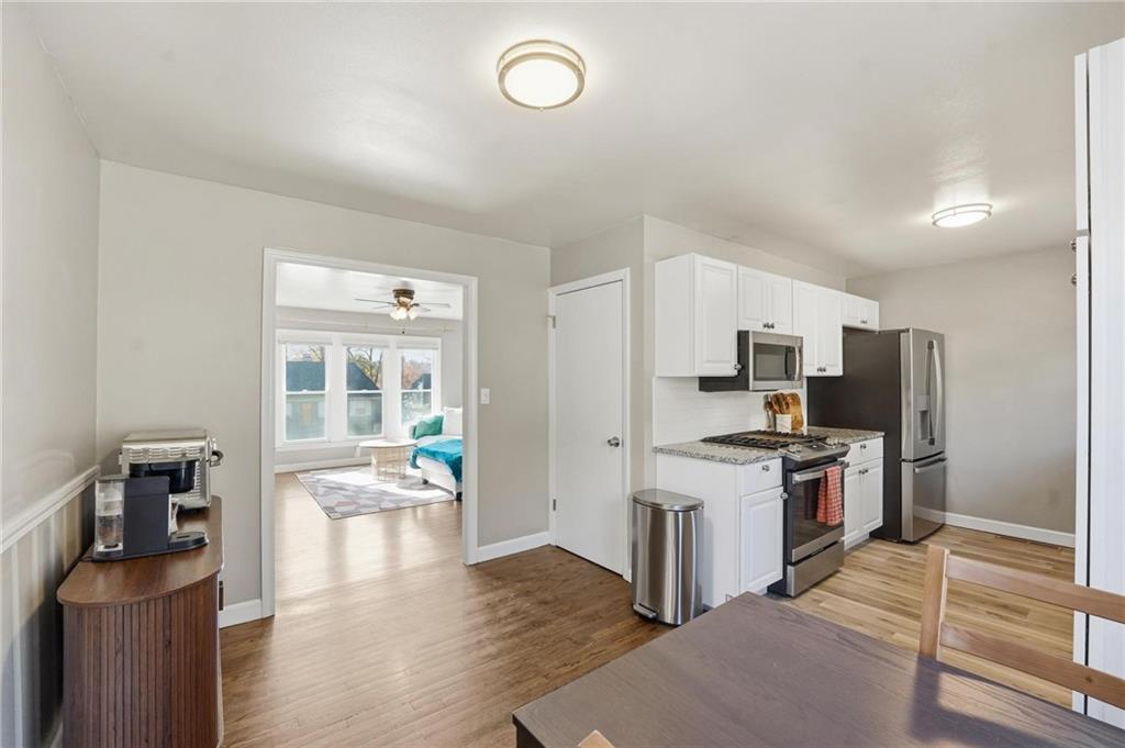 Very cute and charming true ranch home in a highly desirable neighborhood of Kansas City. Great Location with easy access to the highway and all KC has to offer. Move in ready with lots of updates including, newer windows, AC, furnace, water heater. You will love the updated kitchen with all new appliances in 2023. Come enjoy your sunroom that overlooks the patio and backyard. This would make a great sitting area for enjoying your morning coffee. Use your imagination in the very clean unfinished basement to create that additional living space with added square footage. Foundation Repairs done in 2023 with a 7-year transferrable warranty. Very motivated seller and under $300,000 this home is ready for a new owner before the Holidays!