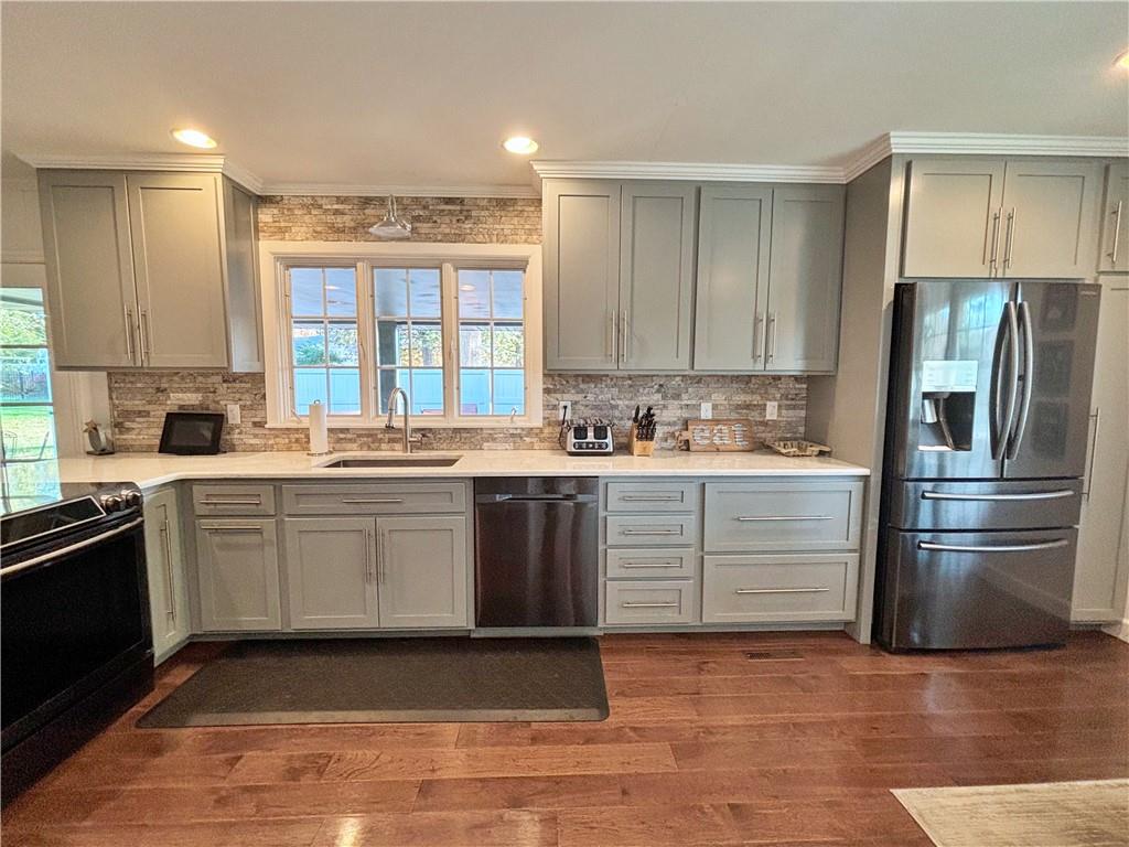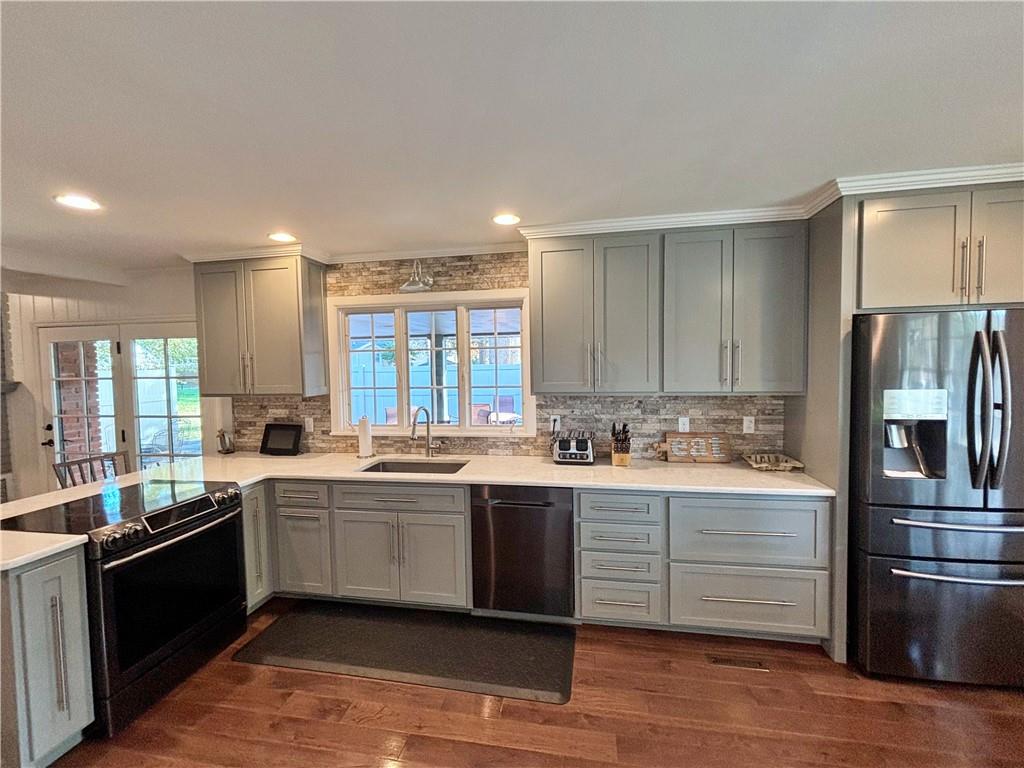 Is quality important? Proudly presenting this well built, well maintained 2 suite home with an incredible updated kitchen and an amazing full, unfinished basement. Plus an enjoyable, large patio (partially covered & private). Desirable southwest location. Beautiful hardwood floors in kitchen, family, & living rooms. Spacious living room and a comfortable family room with a wood burning fireplace. New central heat & air (2021). Whole house generator (10-22). Updated plumbing and sewer line. Andersen Thermal windows, updated electrical, wiring & breaker panel. Hardie board siding. New house paint May 2025. 3rd bedroom was converted to a wonderful primary suite closet (but could be changed back). Unbelievable kitchen has a multitude of cabinets and drawers with beautiful quartz countertops. Special touches include a handy place for your heavy mixer, cookie sheets, pizza pans & more. There's also a main floor utility room with a space for a coffee bar, built-in ironing board, coat closet, and handy pantry. This nice, clean unfinished basement could be used for exercise/play space, office, hobbies and/or workshop. Average utilities-$88 (Elec). $97 (Gas).