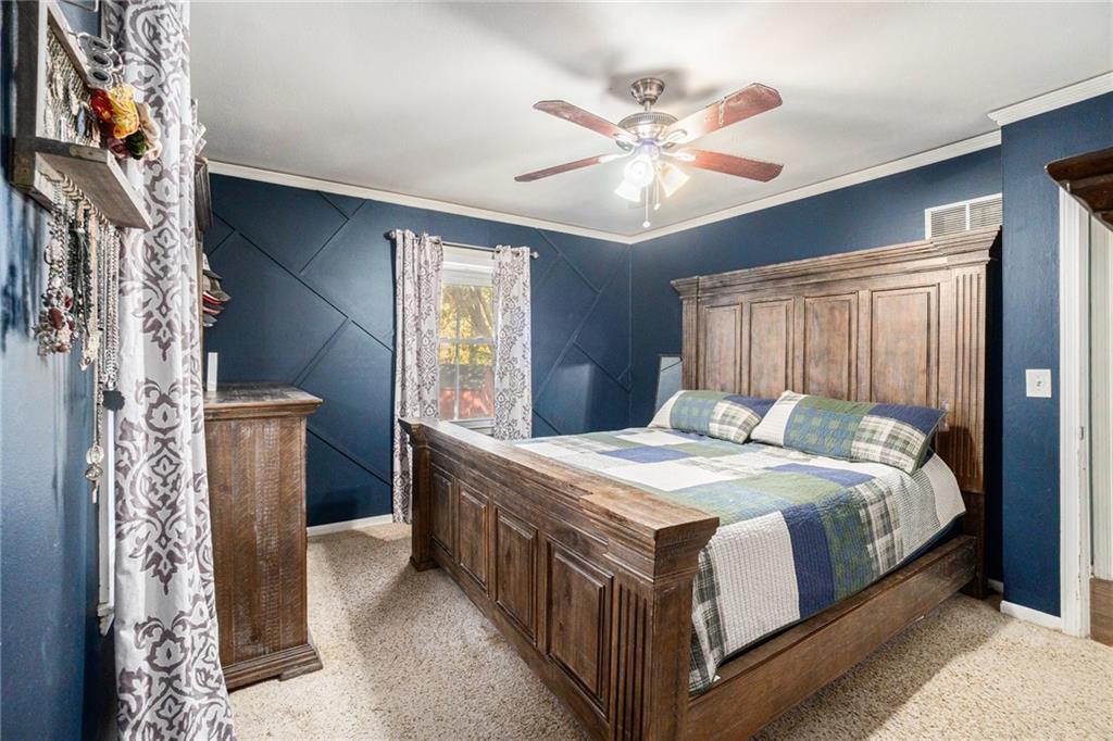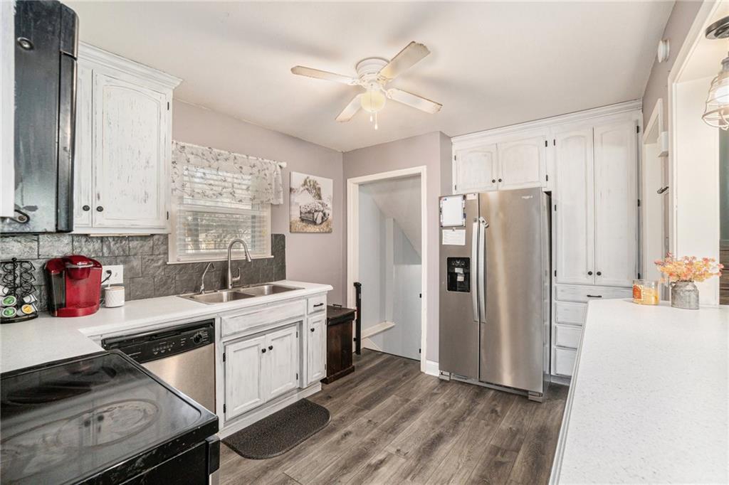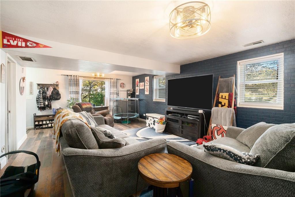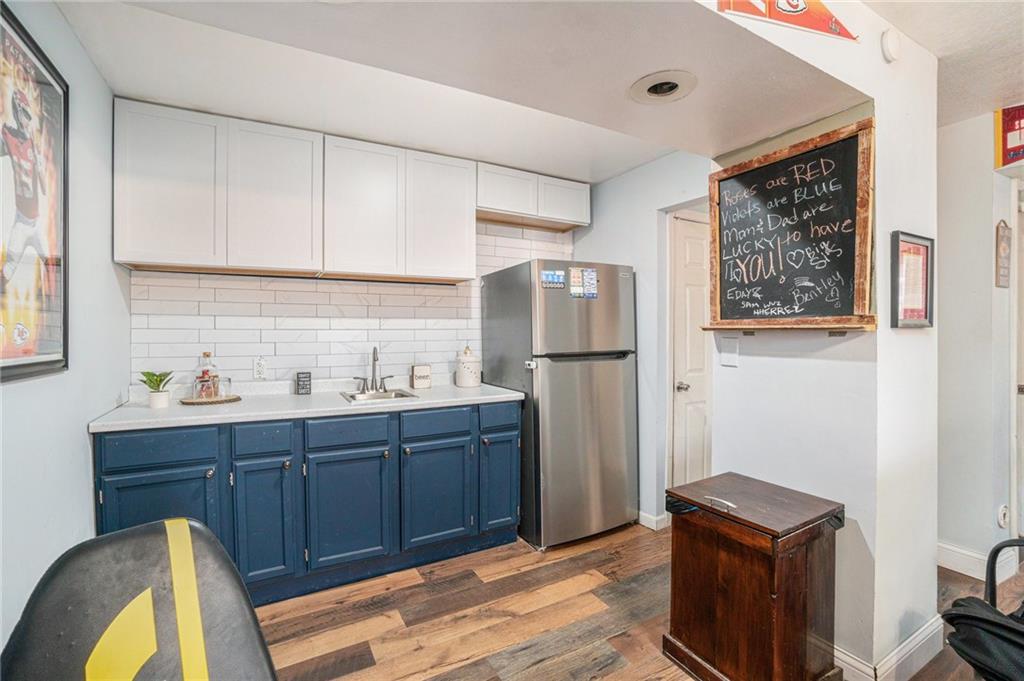 This home is absolutely adorable and full of unique charm. As you step through the front door, you’re greeted by a cozy living area that flows seamlessly into the dining room. The kitchen connects to both spaces, completing the main floor layout and making it perfect for entertaining. Beautifully maintained wood floors run throughout the main level, and the freshly updated kitchen features custom cabinetry and stainless steel appliances. Upstairs, you’ll find the primary bedroom with an ensuite bathroom, along with two additional bedrooms and another full bath. The finished basement offers a large recreation room with a newly built wet bar, modern finishes, and a half bath. One wall showcases a charming exposed brick accent that adds warmth and character to the space. Outside, the fenced backyard is ready to be enjoyed with a fire pit, outdoor storage shed, and plenty of room to relax or play. Situated on a corner lot with a two-car garage, this home is as inviting as it is unique.