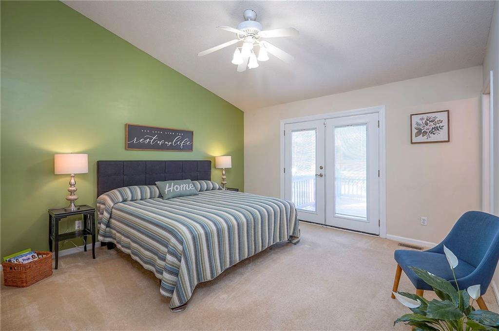 This is a bright, beautiful home on a quiet cul-de-sac.  The front entry opens to a spacious landing & wide staircase.  Step up to the main level featuring a cozy fireplace or step down to the fantastic finished lower level.  This home has an easy-to-love floorplan that flows from the open kitchen, 2nd access to the deck from the primary bedroom, & unique vaulted ceilings throughout.  If having a separate dining area isn’t of interest to you, you might consider officially making the dining area part of the kitchen & adding an island OR do your dining in the kitchen & make the “formal dining area” an extra place to relax.  The lower level is where you will find the half bath, laundry, and more than enough room to work AND play!   This home provides you the luxury of space that is wonderful as it is, or you can reimagine (if need be) to meet your needs!