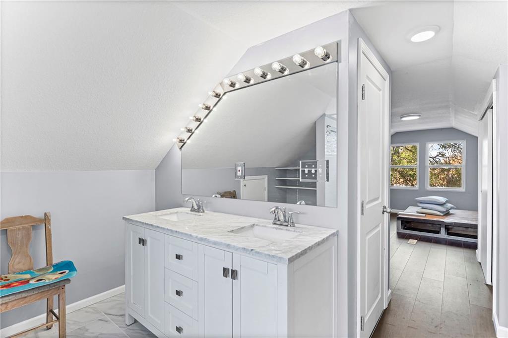 This beautifully updated 3-bedroom, 2-bath home offers comfort, character, and modern style throughout. The main level includes two spacious bedrooms and a bright, open living room filled with natural light. The fully updated kitchen features a large island, modern finishes, and an eat-in dining area perfect for wonderful meals or entertaining. Upstairs, you'll find a private suite that spans the entire floor with its own full bathroom—ideal for guests, a primary retreat, or a quiet workspace. Enjoy extra living space in the enclosed sunroom, or step outside to relax on the large covered deck or back patio. The big, flat backyard provides plenty of room to play, garden, or gather with friends. A detached garage offers convenient parking or additional storage, and the home sits on a quiet street in a welcoming neighborhood. This move-in-ready property is a wonderful place to call home!