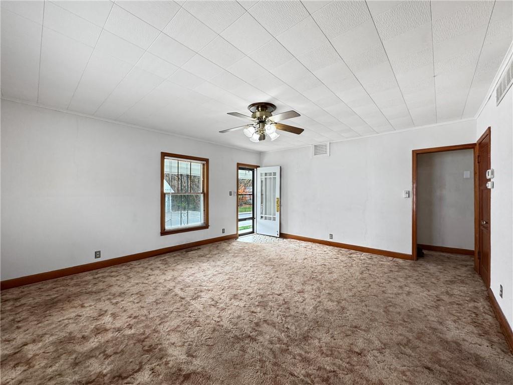 Bring your design ideas to enhance the beauty of the natural woodwork in this 3+ bedroom, 1 bath home. Living room and formal dining room are filled with light from large windows. Two bedrooms and full bath are on main level. Enclosed staircase leads up to second floor with large open room with storage in the side walls, and two smaller side rooms. Step outside from first floor laundry room to enclosed sunroom and a paved patio. Long driveway leads back to garage, providing plenty of parking for guests. Fenced side yard provides safe play area. Backyard has trees along the top of ridge which leads down to creek.