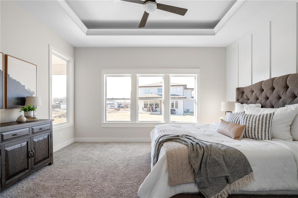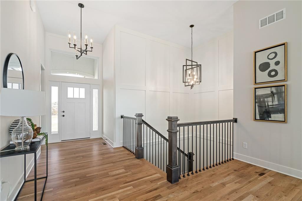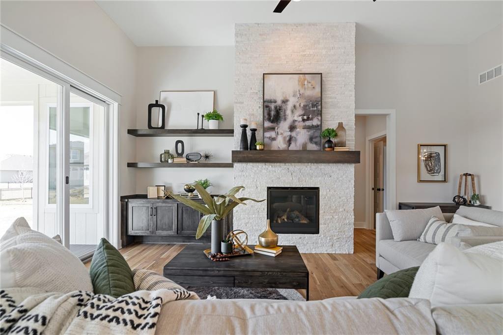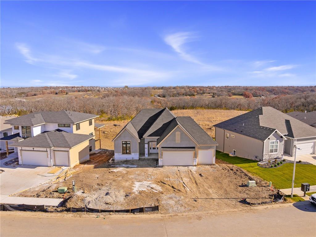 Be wowed by the upgrades & high-quality construction in the stunning Estancia II by DCB Homes on fantastic lot backing to HOA greenspace (back faces east & even has a view of the lake!). This Reverse 1.5 features an open airy & expansive main level w/ large Great Room featuring floor to ceiling split stone at the fireplace, built in cabinets with floating shelves and an 8x12 double slider leading from the Great Room to the back patio. Open dining area with built in cabinet with quartz top & well-appointed cook's kitchen with quartz countertops, gas range, built in appliances. One of the favorite features of this home is the butler's pantry with prep sink off the kitchen and huge pantry. Spacious Master Suite w/ shower, freestanding tub, XL closet & 2nd bedroom & bath on the main level. Finished walk-out lower level w/ large Rec Room, wet bar and large Rec Room for lots of entertaining, 3 secondary bedrooms, full bath & tons of storage. **PHOTOS OF FINISHED HOME ARE OF A SIMILAR HOME** Lakeview Ridge is a new build community just west of Lake Olathe with great homes started and fantastic lots available. You can get to the neighborhood off of Dennis & Houston with easy access from K7 or coming from Lakeshore. Our development is right next to Lake Olathe and neighborhood feeds into Clearwater Creek Elementary, Oregon Trail Middle School and Olathe West High School. Estimated completion in March 2026. NOW IS THE PERFECT TIME TO COME IN AND FINALIZE SELECTIONS!!