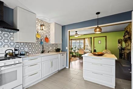 Sweet home in fantastic neighborhood. Well cared for home with an updated kitchen and bath. Fantastic open kitchen with new cabinets, tile and countertops. Newer bath which is very nicely done. Light and Bright living room staged with quaint dining nook in front of the fireplace. Small kitchen island with extra storage. Just move right in and make it yours.