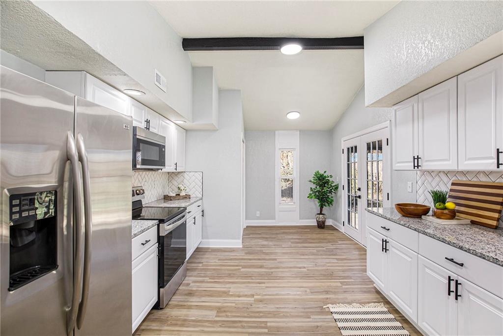 This stunning fully renovated home sits on a quiet dead-end street and feels brand new from top to bottom. Every detail has been thoughtfully updated, including new windows, siding, roof, soffit, fascia, gutters, and a new garage door. Inside, you’ll find all-new trim, doors, flooring, paint, and lighting throughout, creating a bright and modern living space. The kitchen is a showpiece with granite countertops, a stylish tile backsplash, and stainless steel appliances. Both bathrooms have been completely remodeled with fresh, modern finishes, and the open layout makes the home perfect for both relaxing and entertaining. Step outside to enjoy a beautiful covered back patio overlooking the spacious yard—ideal for outdoor dining or quiet evenings. With a brand-new AC system and upgrades in every direction, this home offers the comfort and peace of mind of a new build in an established neighborhood. Move right in and enjoy the best of modern living without lifting a finger.