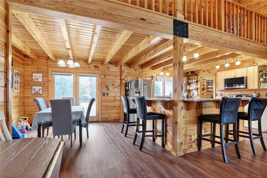 **Secluded Log Home Retreat on Wooded Acreage with Abundant Wildlife on 9.5 acres** Experience true country living in this stunning log home, offering the feel of a private getaway while providing all the comforts of a primary residence. Surrounded by mature woods, scenic views, and frequent wildlife sightings, this property delivers the peaceful, outdoor-focused lifestyle so many seek. Inside, the home features beautiful woodwork and flooring throughout. The main level includes an open kitchen and dining area, along with a spacious primary suite featuring an en suite bath and a large walk-in closet. The kitchen is designed for both everyday use and gatherings, with a wrap-around island, granite countertops, newer appliances, and a generous walk-in pantry. The vaulted living room opens to the upstairs loft area, where you’ll also find a second spacious bedroom and a full bath. The finished walkout basement adds even more living space with a large rec room and two additional bedroom areas, ideal for a variety of uses. Step outside onto the lower patio and take in peaceful wooded views and regular wildlife activity. The acreage offers room to explore, garden, recreate, or simply enjoy nature. A clearing toward the back of the property provides space suitable for outdoor activities such as target practice or other hobby uses. The home is all-electric and features a **wood-burning furnace system** for supplemental winter heat. Solar panel capability and a **whole-house generator** connection add extra efficiency and peace of mind. Relax on the expansive front porch, take in the quiet surroundings, and imagine making this unique property your next home.