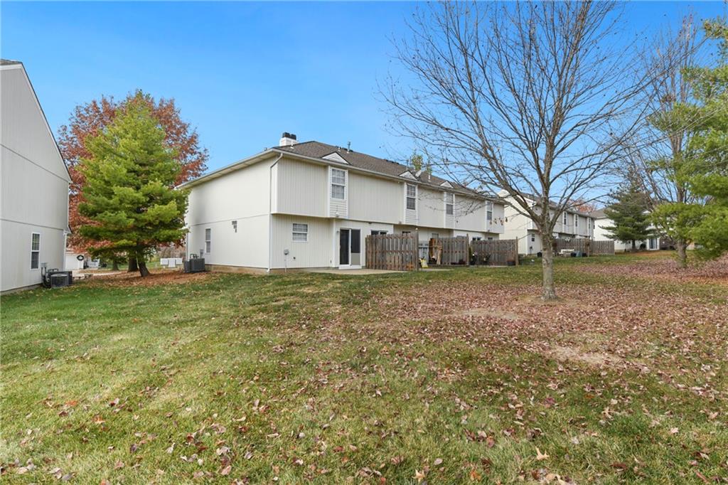 Highly sought after end unit that backs to greenspace with trees. MOVE IN READY!!! Cleaned from top to bottom (even power washed the patio) with a splash of color (various ocean/sky blues and relaxing grays). NEW - kitchen SS appliances (stove, microwave, & dishwasher), carpet throughout the whole unit, kitchen faucet, primary suite - light fixtures, sink faucet, shower & bathtub faucets, toilet flange ring & wax ring), water heater (next week), window & storm door screens (4), & 2 sets of blinds. Seller replaced A/C unit the summer of 2023 to a Trane XR (upgraded). Other updates include - kitchen ceiling light fixture, taller toilet in primary bath, & new fan in living room. BIG BONUS - Garage features an attic pull-down with stairs for additional storage. Front faces West (sun to clear driveway). The patio is on the East (shade for the evening). Washer & dryer stay with the unit. Amenities include lawn care, snow removal, community pool, exterior maintenance. Neighborhood is owner occupied only, no rentals allowed. Home is close to shopping and restaurants, with quick highway access, and located within award winning Lee's Summit School District (New middle school - 1 mile to the East). Don’t miss out on this fantastic opportunity to own a move-in ready home with thoughtful updates in a prime location. COME SEE IT TODAY!