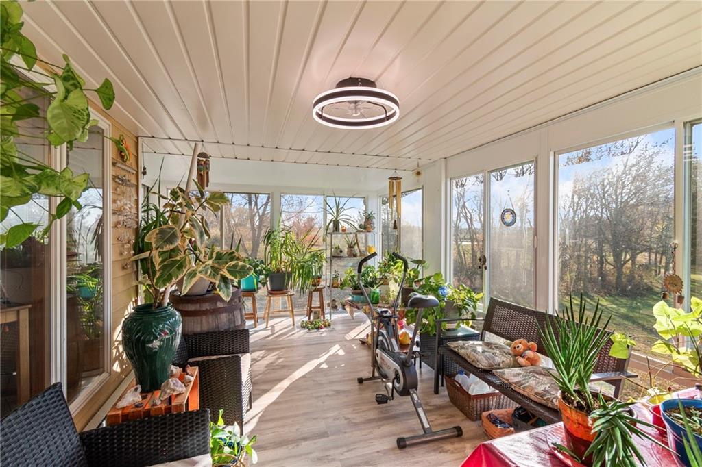 Experience country living at its finest on 8.4 beautifully landscaped acres right on blacktop roads, where tranquility meets contemporary upgrades in this inviting Odessa retreat. Step inside to find a spacious three-bedroom, two-bath ranch layout designed for everyday comfort. You’re greeted by a warm, inviting kitchen made for holiday gatherings. With its open layout, large island, bar seating, and custom pantry shelves, there’s space to cook, connect, and keep family close. The kitchen flows seamlessly into the living room with its beautiful brick wood-burning fireplace—perfect for entertaining. Need extra seating? Move from the kitchen bar to the adjoining dining room. This open-concept design ensures you’re always part of the fun. Off the living area, the master bedroom features a private porch to enjoy evening sunsets, while the updated master bath boasts a stunning custom shower with dual shower heads, his-and-her sinks, and separate closets. Too hot or cold for the porch? Relax in the sunroom and soak in serene views of manicured grounds with apple and pear trees. Just off the sunroom, a large newer deck offers plenty of space for family. Evenings are cozy by the fireplace, and modern updates—new can lights, generator hookup, surge protector, 4 year old roof, and new furnace blower motor—add both efficiency and peace of mind. This all-electric home stays energy efficient year-round. A deep two-car garage and huge unfinished basement with elevated ceilings offer abundant storage or expansion potential. Outside, a 42x50 barn with concrete floors, covered awning, and its own electric panel provides flexible space for livestock, hobbies, and a workshop. If that’s not enough, a three-sided pole barn adds even more storage. This property blends country charm with modern comfort— with a perfect blend of pasture and wood. This is an exceptional choice for hobby farmers, outdoor enthusiasts, or anyone seeking a peaceful, versatile retreat close to town and highways.