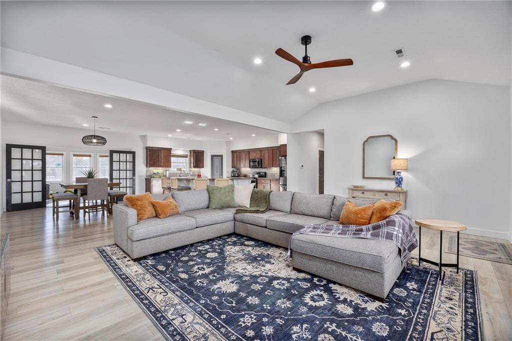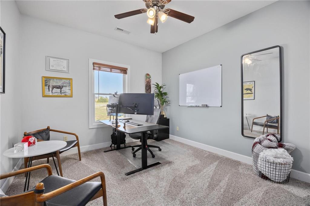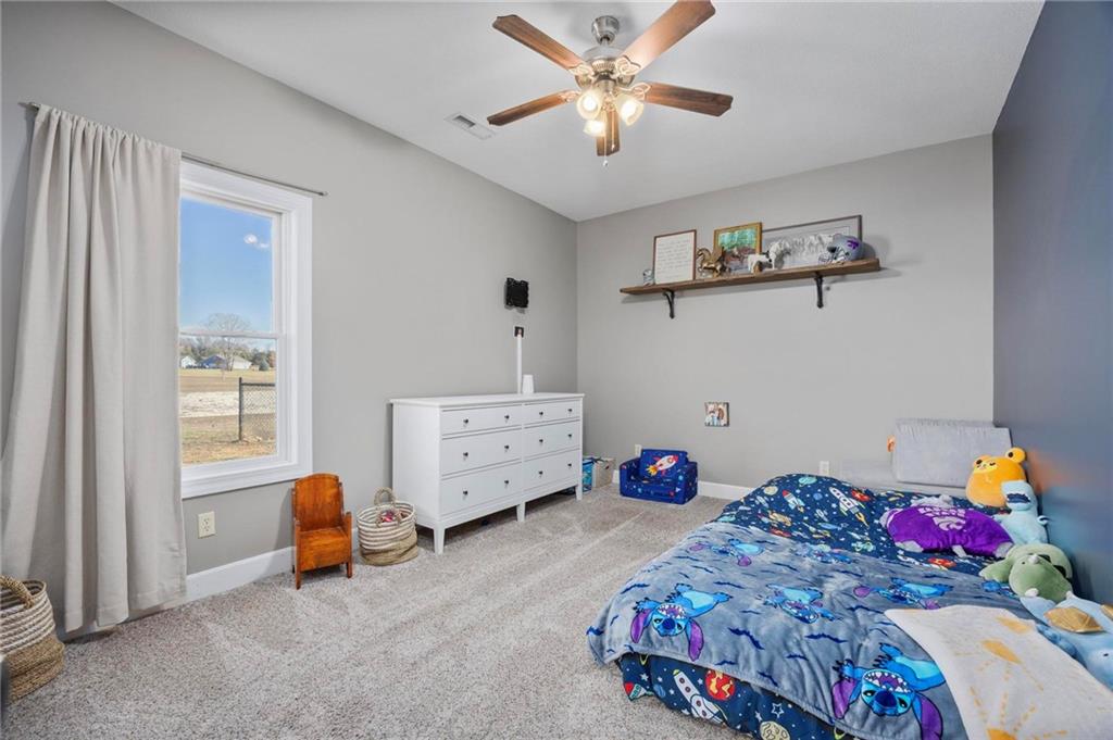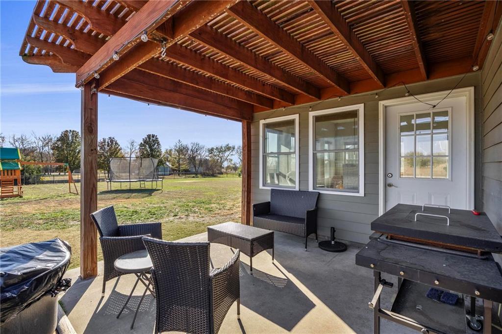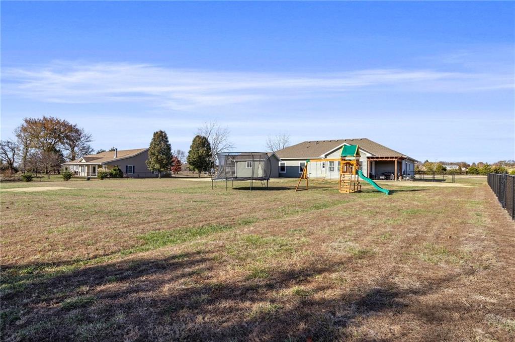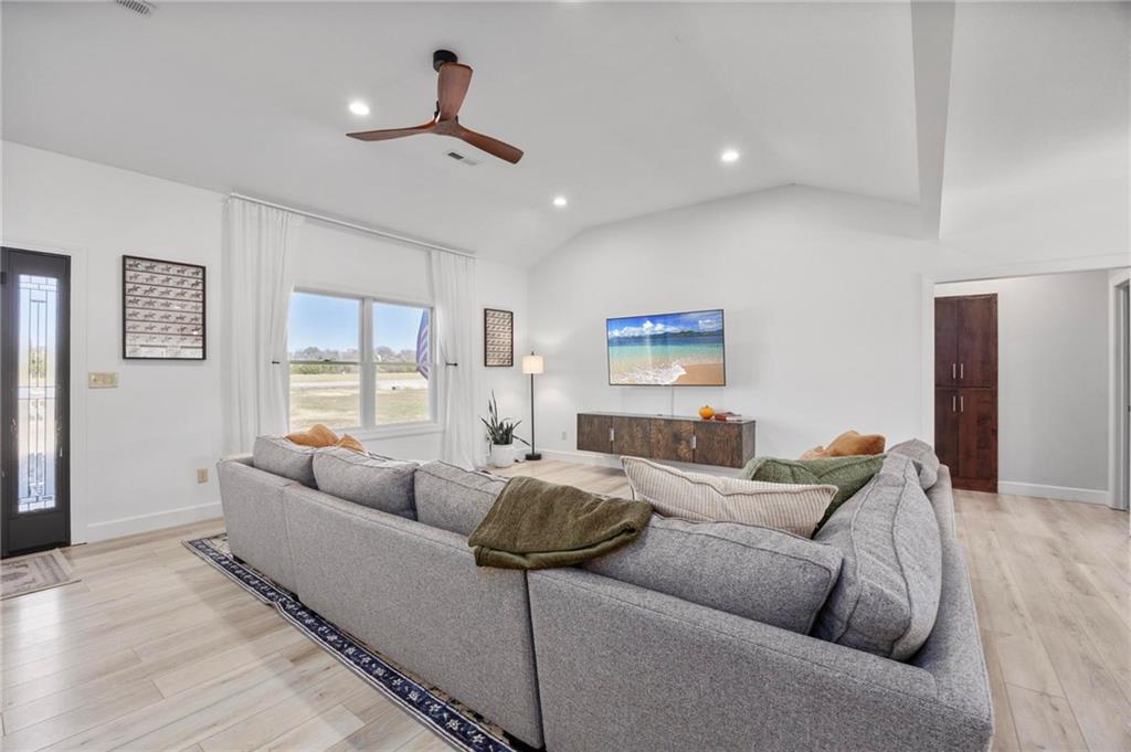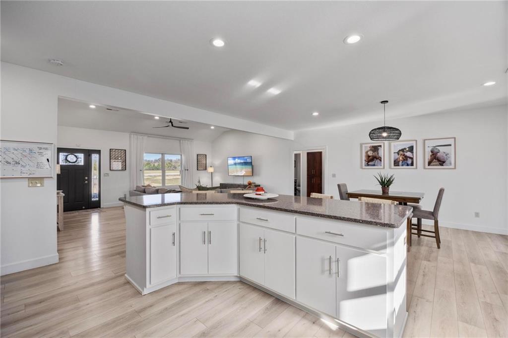Step into modern ranch-style living with this beautifully designed home, built in 2017, offering 2,338 SF of comfort, convenience, and class. Every detail has been well thought out and executed - inside and out! Once you walk through the front door, the home welcomes you with a spacious open-concept layout, complemented by tall ceilings, light-toned LVP flooring, stylish fixtures, and a fresh color palette. The heart of the home seamlessly blends living, dining, and kitchen spaces, making it ideal for both everyday living and hosting guests. The kitchen boasts a plethora of cabinetry, sleek quartz countertops, a large corner pantry, stainless appliances, and a huge center island. The primary bedroom and en suite bathroom is a true retreat, boasting an oversized walk-in shower and a massive closet. Another bedroom is located close to the primary suite, while two additional bedrooms flank a second full bath on the opposite side of the houe. An enclosed sunroom provides a cozy spot to take in the changing seasons from the comfort of home. The mudroom/laundry room is conveniently located just inside the door from the attached, temperature controlled 2-car garage. While the inside brings the wow factor, the outside also packs the punch! Features include a paved circular drive, a large fenced-in yard, a pergola-covered back patio, a covered front porch, a water feature, and low-maintenance landscaping. Other thoughtful upgrades include a storm shelter, a water purification system, and a Generac generator system. The adjoining two lots (0.9 acres each) are included, for a total of 2.7 acres, and the middle lot has a 60'x60' pad with electric run to it, just waiting for you to build your dream shop or a guest cottage. With its modern design, premium features, and an unbeatable location, this property is a rare gem that truly has it all!