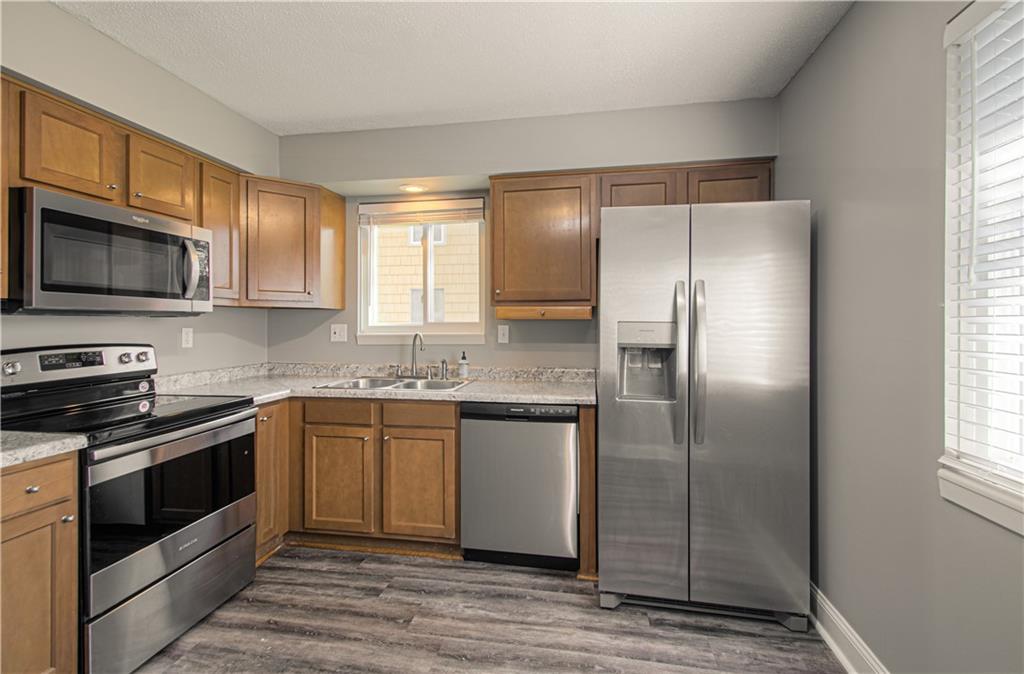 Turn the key and move right into this wonderfully updated half duplex in a primetime Overland Park location. The house was completely renovated less than 10 years ago. Easy to care for luxury vinyl plank on the main level. Spacious living room with tremendous natural light and oversized hall closet. Living features 2" shades and 6" baseboards. Sunny eat in kitchen comes equipped with stainless steel appliances and a pantry. Two bedrooms upstairs both have carpet, ceiling fans, window shades and generously sized closets. Fully updated bathroom on the main level. Freshly painted, newer windows, new AC and all neutral throughout. Huge recreational room for your second living area - again fantastic natural light and an awesome sized downstairs closet for storage. Lower level features a half bath too. Walkout basement to a cozy patio surrounded by a privacy fence. Extra deep garage too. The house sits on the fringe of highly desirable Greenbrier. Good amenities for the low montly dues of $145 - lawn care, snow removal, swimming pool, tennis/pickleball courts, park area, trash/recycle, gym and clubhouse. Clubhouse is a fantastic spot to host those large get togethers! Active social community too. Location, location, location - close to downtown Overland Park, shops, bars, restaurants, parks, schools and super easy access to highways. Minutes to downtown KC, Plaza or southern Johnson County. Ditch the rakes and let the HOA do the yard work!