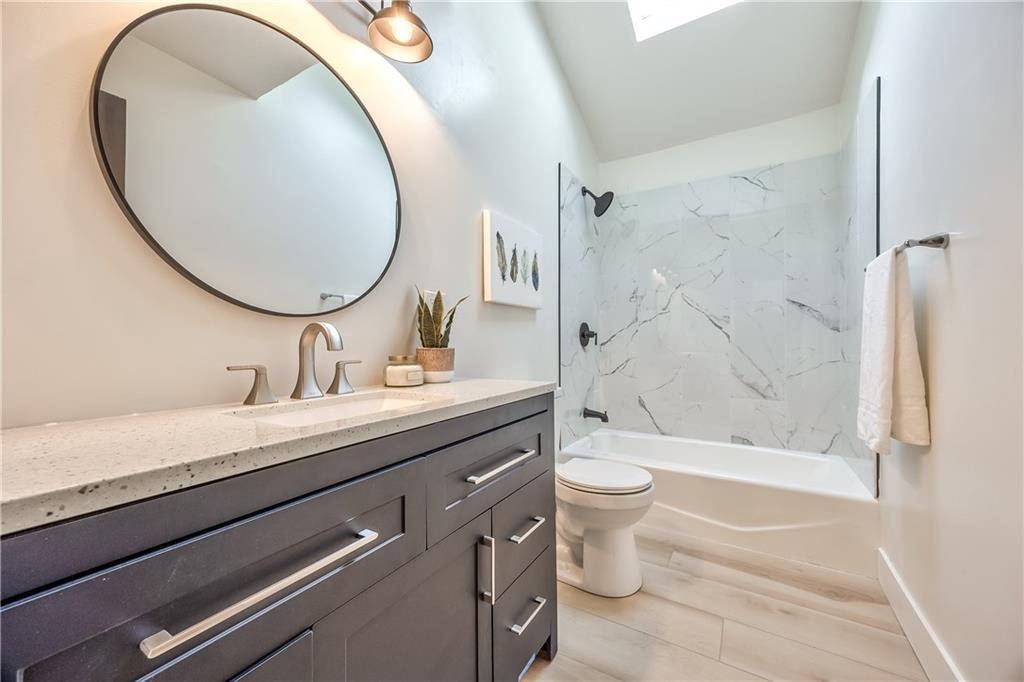 Fully Renovated Home in the Heart of Olathe, Kansas Welcome to this beautifully renovated three-bedroom, two-and-a-half-bath home located in the heart of Olathe. Every detail has been thoughtfully updated to combine modern luxury with everyday comfort. Step inside to find natural white oak LVP flooring throughout the main areas and luxury carpet in the cozy basement fireplace room. The primary suite features a double vanity, walk-in shower, and spacious walk-in closet, offering a true retreat. The hall bath includes a tub and shower combination and a skylight that fills the space with natural light. The fully updated kitchen boasts brand-new cabinetry, a center island, and high-end stainless steel appliances, including a Frigidaire induction oven—perfect for the home chef. Outside, enjoy a large deck overlooking a lush grassy yard and a 10x10 concrete fire pit pad, ideal for gatherings. The home also features all-new exterior siding, giving it fresh curb appeal inside and out. This move-in-ready home offers the perfect blend of quality, comfort, and style—ready to welcome you home!