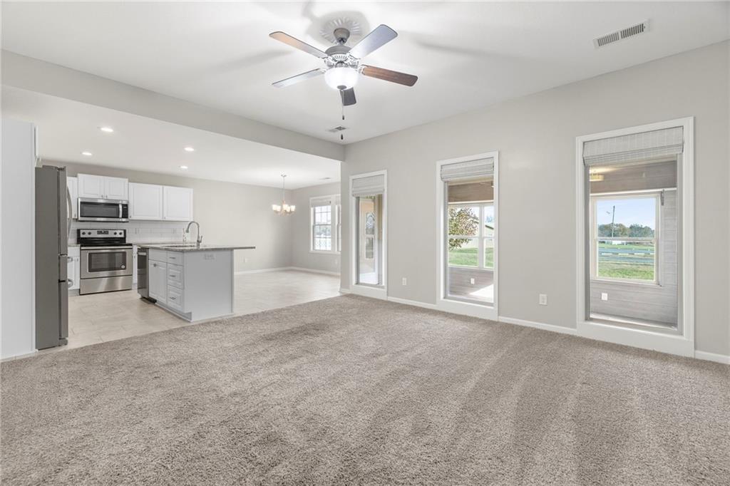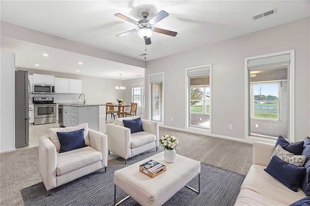 Better than new & in great shape! This home has beautiful granite in the kitchen & both bathrooms. The kitchen has a pantry, an island & stainless steel appliances. It is open to the dining area and the living room for an open feel. The kitchen walks out to a nice 4 season sunroom. In the primary suite you will find custom barn door window coverings, double vanity & walk-in closet. Carefree living in this maintenance free 55+ community. Low HOA fee covers lawn maintenance, snow removal, clubhouse & trails. One level ranch! 2 bd, 2 full baths, 2 car garage. Move in ready!