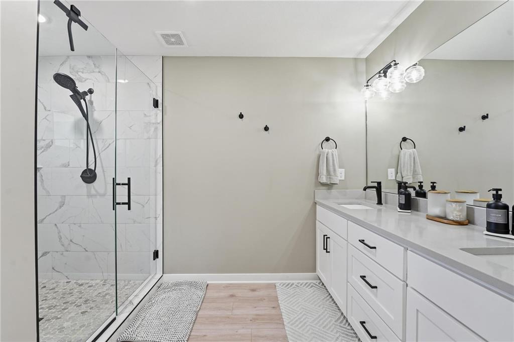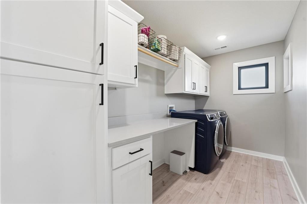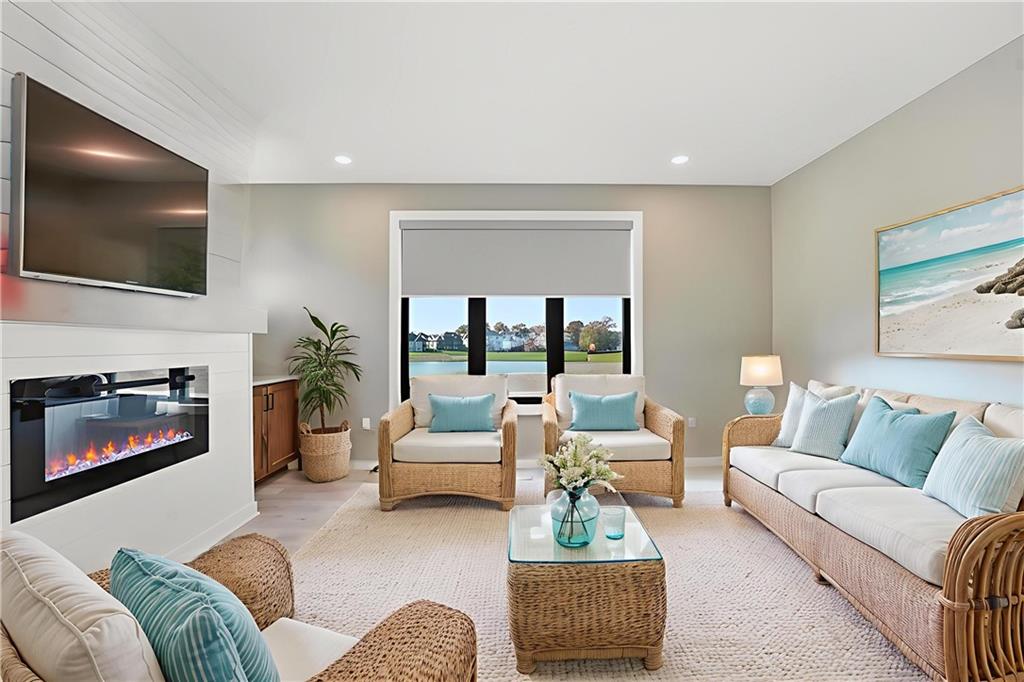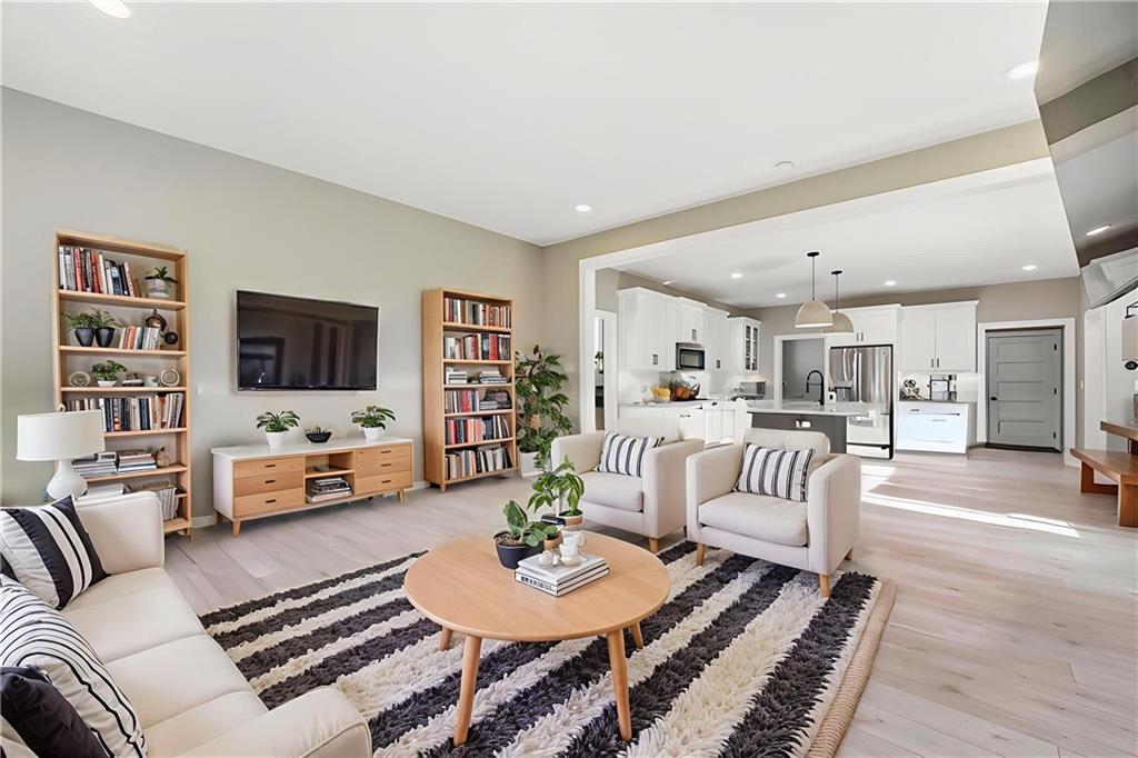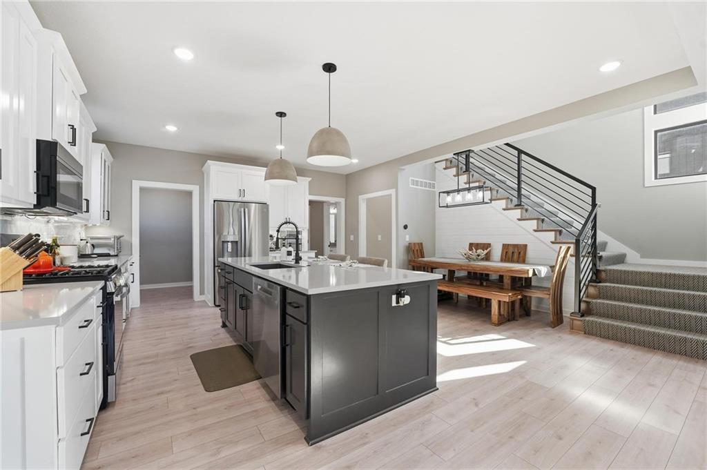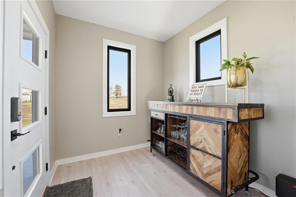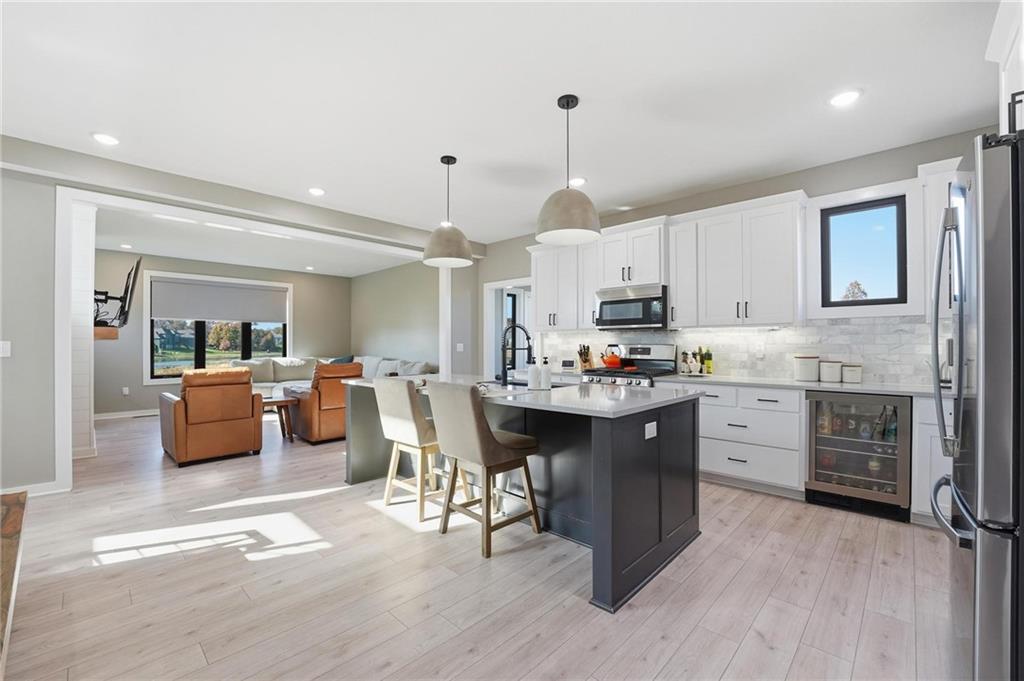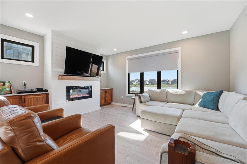 Exquisite Two-Story Home with Water Views in Warrensburg Discover a rare blend of modern luxury and natural beauty in this stunning two-story home overlooking a peaceful pond/lake where blue herons and even bald eagles are known to visit. With its striking stucco front and hardie board-style siding, this home delivers impressive curb appeal from the moment you arrive. It is so larger than it looks! Step inside and be greeted by soaring ceilings, abundant natural light, and expansive custom windows that showcase the serene lake views. The grand staircase makes a statement of its own—graceful, open, and truly fit for royalty. The heart of the home is the chef’s kitchen, designed for those who love to cook and entertain. Featuring quartz countertops, painted walnut cabinetry, a large center island, and a butler’s pantry, this kitchen offers both elegance and functionality. The open-concept living area flows seamlessly, highlighted by a modern linear electric fireplace and stylish white walls accented with black hardware for that clean, contemporary look. Upstairs, enjoy spacious bedrooms with large closets and an enormous walk-in primary closet that feels like a boutique. The large laundry room and built-in drop zone/mudroom bench add everyday convenience and thoughtful design touches. Step outdoors to a flat, black-fenced backyard and enjoy evenings under the open sky, or sip your morning coffee from the covered front porch as you watch the sun shimmer across the lake. The home also features custom-fitted smart blinds and in-ground lawn irrigation for effortless maintenance. This home is not your typical cookie-cutter design—it’s a statement of taste and individuality, where every detail has been carefully curated for comfort and style.