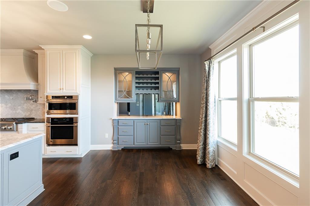 Step into this pristine 1.5-Story WatersEdge WALK-OUT where elegance, comfort & lifestyle converge. Situated on a premium .43-acre greenspace lot, this home offers 6 bedrooms, 5.5 bathrooms AND a private office w nearly 5,000 sq ft of thoughtfully-designed living space, featuring wide-plank, hickory wood floors & a stunning 2-story great room w stacked-stone fireplace & tons of natural light. Gourmet kitchen includes floor-to-ceiling shaker-style cabinets, granite & quartz countertops, gas cooktop, double wall ovens, oversized walk-in pantry and amazing built-in butler's hutch. An instant hot water makes meal prep effortless. Dining area flows seamlessly to a screened-in Trex outdoor deck for casual dining w built-in fireplace for year-round enjoyment. The primary suite is a private retreat with spa-inspired bath, soaking tub, multi-head walk-in shower, and a massive custom walk-in closet with pass-through laundry access. Upstairs, a spacious loft serves as a flexible family room or play area, complemented by 3 additional bedrooms each w private bathrooms & walk-in closets. The walk-out lower level is ideal for entertaining, featuring a family/media room, 5th & 6th bedrooms w jack-n-jill full bath. Basement opens to a covered concrete patio leading out to a gigantic yard. Enormous storage room. NEW: AC/HVAC, sump pump, smoke detectors, fence, exterior paint, external front light fixtures. Regular pest control and professional cleaning services. Additional features include OVERSIDED GARAGE, ADT Security System, front/back sprinkler. Plenty of space for home gym/craft room/recording studio/meditation/wine cellar etc! CLUBHOUSE: full kitchen, fitness room, party space. Move-in ready w all kitchen & laundry appliances included...this home delivers luxury, space, lifestyle in one remarkable package...your next VIBE awaits! MLS photos are virtually-staged.