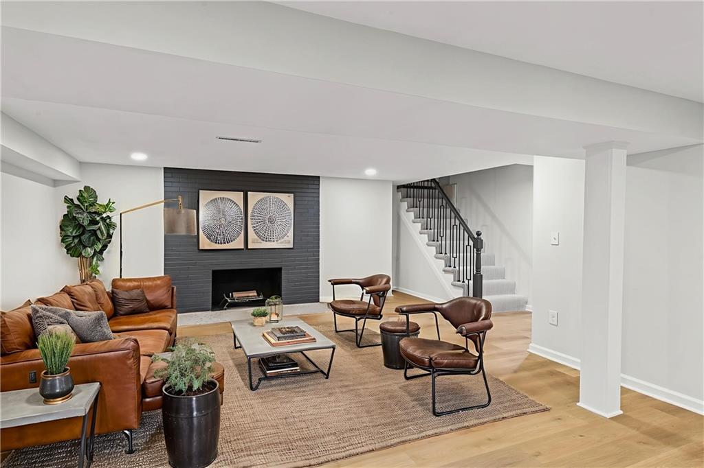 Welcome to your fully updated modern ranch—bright, open, and completely move-in ready. This beautifully refreshed home features 4 bedrooms (the master is an ensuite), 3 full bathrooms, and a fully finished lower level. Step inside to an airy main floor with new interior paint, large picture windows, and a stunning floor-to-ceiling brick fireplace with a sleek natural-wood mantel. The open kitchen shines with brand new cabinets, granite counters, stainless steel appliances, modern lighting, and a sleek subway-tile backsplash. The dining area opens to the backyard through double glass doors—perfect for indoor/outdoor living. Downstairs, the fully finished lower level offers a huge second living space with a second fireplace, new flooring, a convenient wet bar/kitchenette, a large bedroom, and an updated full bath—ideal for guests, an office, or a private suite. Outside has a fully fenced in backyard perfect for pets. Don't miss out!