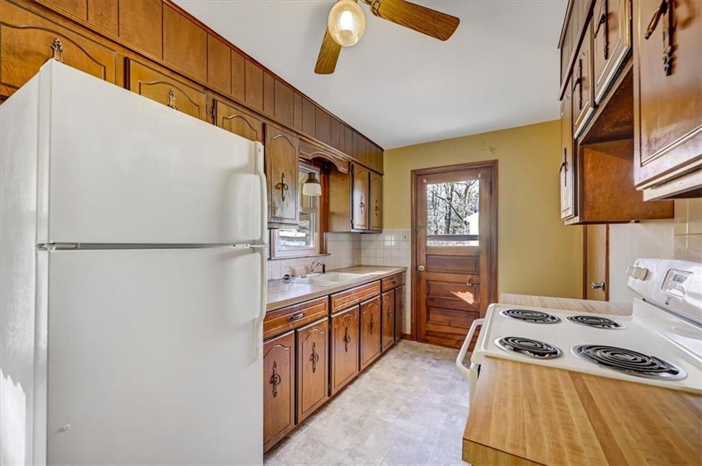 Well maintained home with original hardwood floors throughout most of the main level. Living room, kitchen with fridge and stove that stay, 2 bedrooms and full bathroom on the main level. 3rd bedroom and laundry are in the basement along with plenty of space for storage and an attached shed. Fenced in backyard. Newer windows. Great starter home or perfect for those looking to downsize.