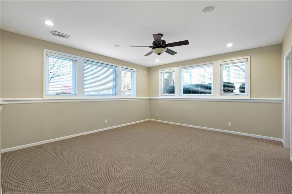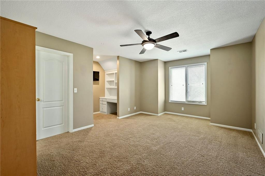 Looking lovely in Leawood is this 1.5 story home with a phenominal floor plan that is laid out with large rooms and spaces. Many big windows let in lots of light and have plantation shutters on the main level! The kitchen has double ovens, warming drawer, Viking gas range with downdraft, walk in pantry and is open to the hearth room with a see through fireplace. The main level office features a wall of custom cabinetry and new carpet. The primary on the main level has an updated tile shower and freshly painted cabinets. Upstairs the bedrooms are generously sized and paired with a large loft room for extra space! The lower level is open with a kitchenette, full size refrigerator and bar seating. A 5th non-conforming bedroom, full bathroom and big workout room bring every bit of functionality to this home. All located on a lot with a fully fenced backyard, newer driveway and sidewalk, just down the street from the neighborhood pool, in Iron Horse Estates surrounding the public golf course and driving range. The location offers so many nearby amenities, and award winning schools!