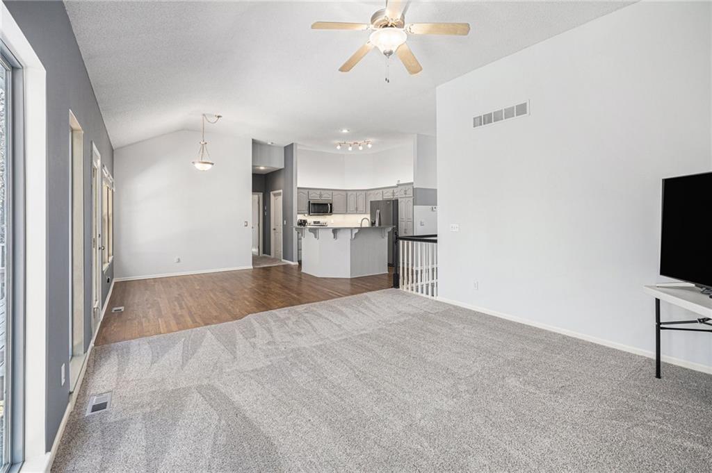 Welcome to this beautifully maintained 3-bedroom, 2-bathroom ranch nestled in the highly sought-after Platte City School District. This turnkey home features a bright and updated kitchen with stainless steel appliances, painted cabinetry, and ample counter space—perfect for everyday cooking or hosting family and friends. The main level offers refinished hardwood floors and new, plush carpet, creating a warm and inviting atmosphere. A spacious Great room with large windows brings in natural light and offers serene views of the mature trees surrounding the property. Cozy up by the fireplace or enjoy the flexibility of the bonus room, ideal for a formal dining space, home office, playroom, or personal library. Step outside onto the Large deck, perfectly positioned to overlook the peaceful, tree-lined lot—an ideal spot for morning coffee or evening relaxation. A walk-out, unfinished basement provides exceptional versatility—ideal for storage now and perfectly positioned for a future custom finish, complete with bathroom stub-in. With main-level bedrooms, thoughtful updates, newer a/c & roof and a quiet setting, this home is truly move-in ready. Easy access to Line Creek Trail: over 8 miles of paved trails through the woods and waterfalls of suburban Platte County. Don’t miss your chance to make it yours! Buyers' Agent responsible for verifying all information, including but not limited to sq ft, schools, taxes, room count, HOA, etc.