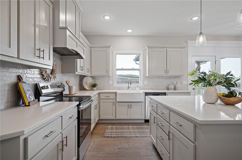 Levi II - Front Porch. This home is one of Prieb's most popular floor plans and features a large island in the kitchen and painted cabinets. There is a flex room on the main floor off the kitchen perfect for a home office with a full bathroom located close by. A stone fireplace in the great room and open floor plan are favorite features of this home. The primary bedroom has a huge primary bathroom with double vanities and granite countertops, separate shower and tub, and large walk-in closet. The laundry room is conveniently located next to the primary closet. The 3 secondary bedrooms upstairs are all spacious and have direct access to a bathroom. Home could close in 45 days or less.