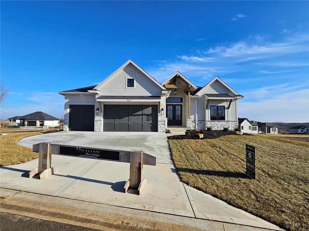Hilmann Home Building brings their stunning "Newport" Rev. 1.5 sty plan to Prairie Canyon, Johnson Counties newest maintenance provided community, conveniently located just west of K-7 & south off of College Blvd.! Thoughtfully placed on a quiet cul-de-sac, this home sits on a level lot and backs east for morning sun & evening shade! Beautiful front elevation with stone accents leads you into an open concept plan that features 2 bedrooms on the main floor & 2 bedrooms in the finished LL. Phenomenal kitchen & Primary suite, you'll love the luxurious & innovative interior finishes and there is a furnished model of this plan very close by that's open daily from noon to 5:00 except Holiday's. Lower level includes a wet bar, plenty of entertaining space, a share bath between bedrooms & an additional 1/2 bath for guests.