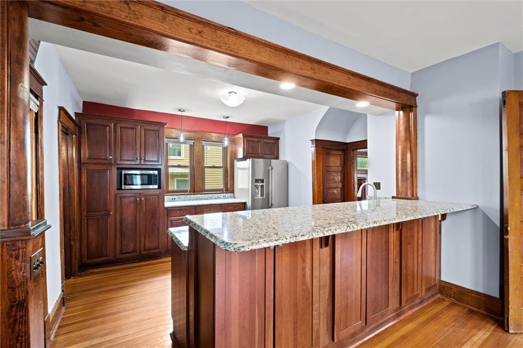 Open House: Saturday, November 22nd!! 1-3pm! Step into timeless charm with this spacious 1910 Four-Square Victorian. Flooded with natural light, the home showcases four stunning stained-glass windows, hardwood floors throughout, and beautifully preserved original woodwork. The remodeled kitchen features an open-concept layout with granite countertops, stainless steel appliances, and the perfect blend of modern convenience and historic character. A wood-burning stove anchors the living area, while the marble-accented half bath adds a touch of elegance. The expansive third-floor room offers flexible use as a bedroom, playroom, or office. Outside, enjoy the screened-in back porch or unwind on the welcoming covered front porch—ideal spaces for morning coffee or evening relaxation.