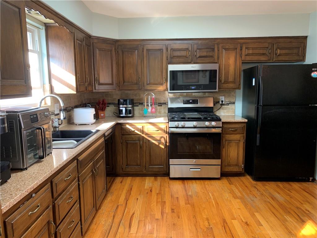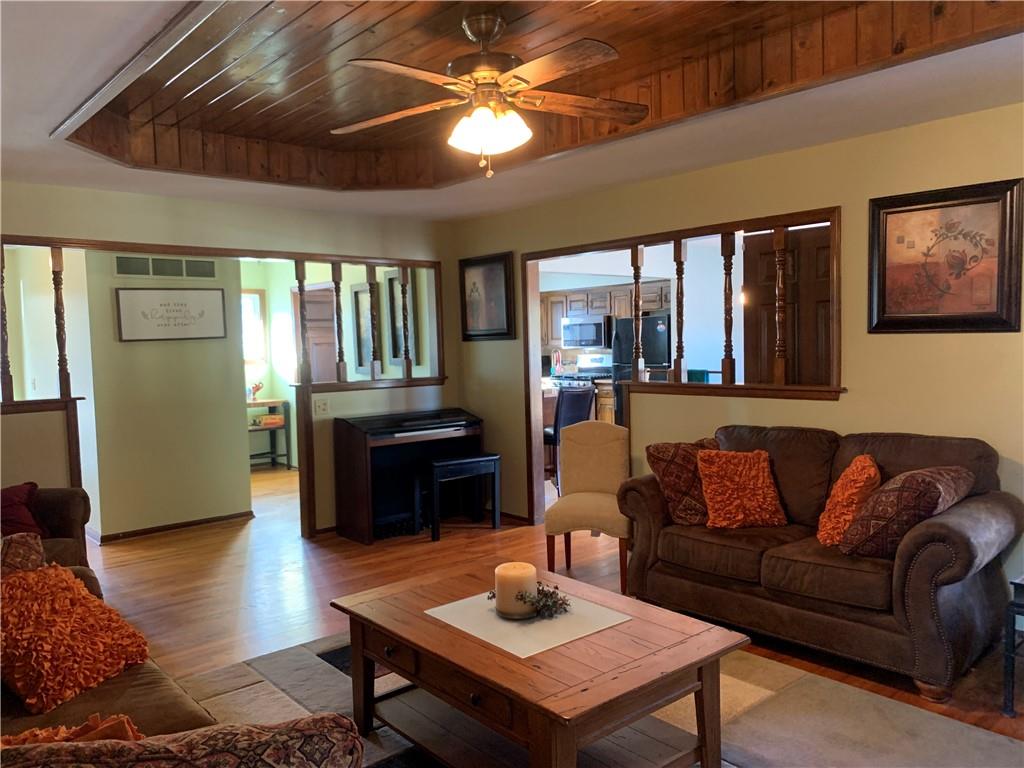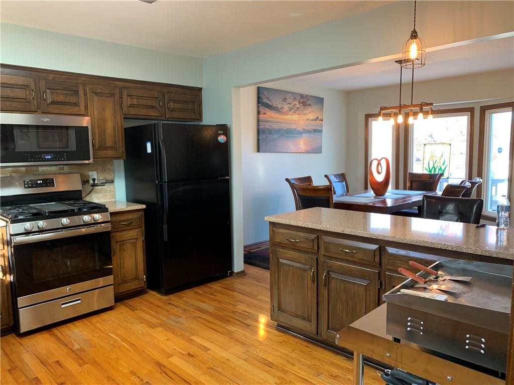 A wonderful opportunity to move into your new home just in time for the holidays. This inviting residence features 3 bedrooms, 2.5 bathrooms, and an oversized 2-car garage. Fall in love with the welcoming entry that opens to a spacious family room, where a brick fireplace and built-in shelving on each side frame cozy gatherings. Warmth radiates from the cut-out wood ceiling spaces and newer wood flooring, seamlessly blending classic charm with modern comfort. The kitchen has undergone a recent makeover, with refinished cabinets and a stylish backsplash, granite countertops, a generous island, and ample room to move around; it’s open to the generous dining area. Enhancing everyday living, a gas stove awaits, with a new dishwasher and garbage disposal being installed this week. The bathroom updates shine with a new tub, backboard, and vanity, bidet, accompanied by LVT flooring. A second new bidet, also in the primary bathroom. The finished lower level adds a newer half bath and a second family room for extra living space. The roof and siding are under ten years old, and a new water heater is being installed this week. Outdoor entertaining is made easy on the large deck overlooking a huge fenced backyard. You will love the laundry room on the main level. All of this sits in a desirable area with plenty of shops, good schools, and easy highway access. Priced to sell—come see it today.