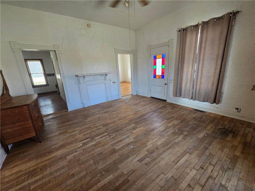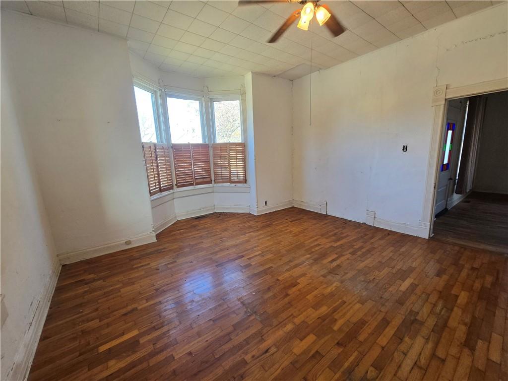 Charming 1900 bungalow on an oversized Lot. Step into the character and charm of this 3-bedroom, 1-bath bungalow, built in 1900 and filled with timeless details. From the moment you arrive, the cozy front porch welcomes you into a home boasting 9-foot ceilings, hardwood floors, and a beautiful bay window that fills the living space with natural light. The inviting living room has the potential for a great fireplace with classic touch—perfect for cozy evenings. Situated on a very large lot, the property offers a fully fenced backyard, dedicated garden area, and a metal shed for storage or hobbies. A basement walk-up, back porch, and ample off-street parking provide both convenience and functionality. There's also plenty of space for a detached garage, offering great potential for future expansion. With its new roof and great bones, this home is ready for someone to bring it back to its full glory. With a little TLC, it can become a truly stunning property once again. Don’t miss the opportunity to make this charming bungalow your own!