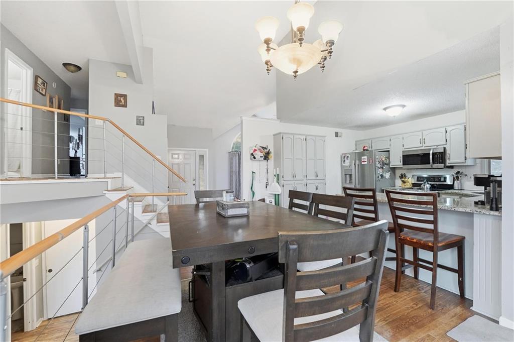 This cul-de-sac charmer brings space, privacy, and a layout that fits real life. The yard feels like your own little park with mature trees all around. Inside, the vaulted living room sets the tone with great natural light. The kitchen has granite counters, updated appliances, and LVP that continues into the bedrooms for a clean, cohesive look. The dining area opens to a deck that overlooks the trees, perfect for easy mornings and relaxed evenings. The primary suite has a roomy walk in closet, and the finished lower level gives you bonus hangout space with a walkout to that huge backyard. This home blends comfort with function in a location that feels tucked away yet close to everything.