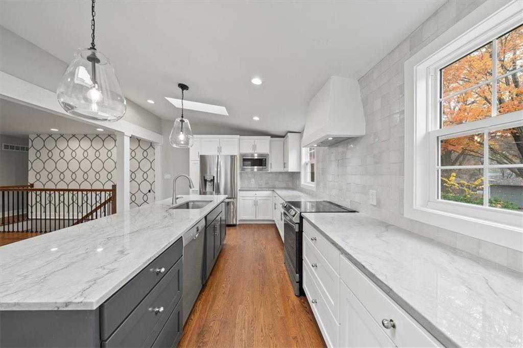 Welcome to 7612 Maple Street, where elegance meets everyday comfort in the heart of Prairie Village. Tucked into a quiet cul-de-sac, this beautifully renovated home offers a thoughtful blend of style, function, and modern living. The open-concept design features a stunning, fully updated kitchen, 5 spacious bedrooms, and 3 full bathrooms—perfect for both daily life and effortless entertaining. Enjoy the inviting three-seasons room, a large deck overlooking the lush backyard, and an expansive finished basement that adds valuable extra living space. With an attached two car garage, and its location in the brand new Tomahawk Elementary and Shawnee Mission East High School district, this home truly delivers convenience and charm in one exceptional package.