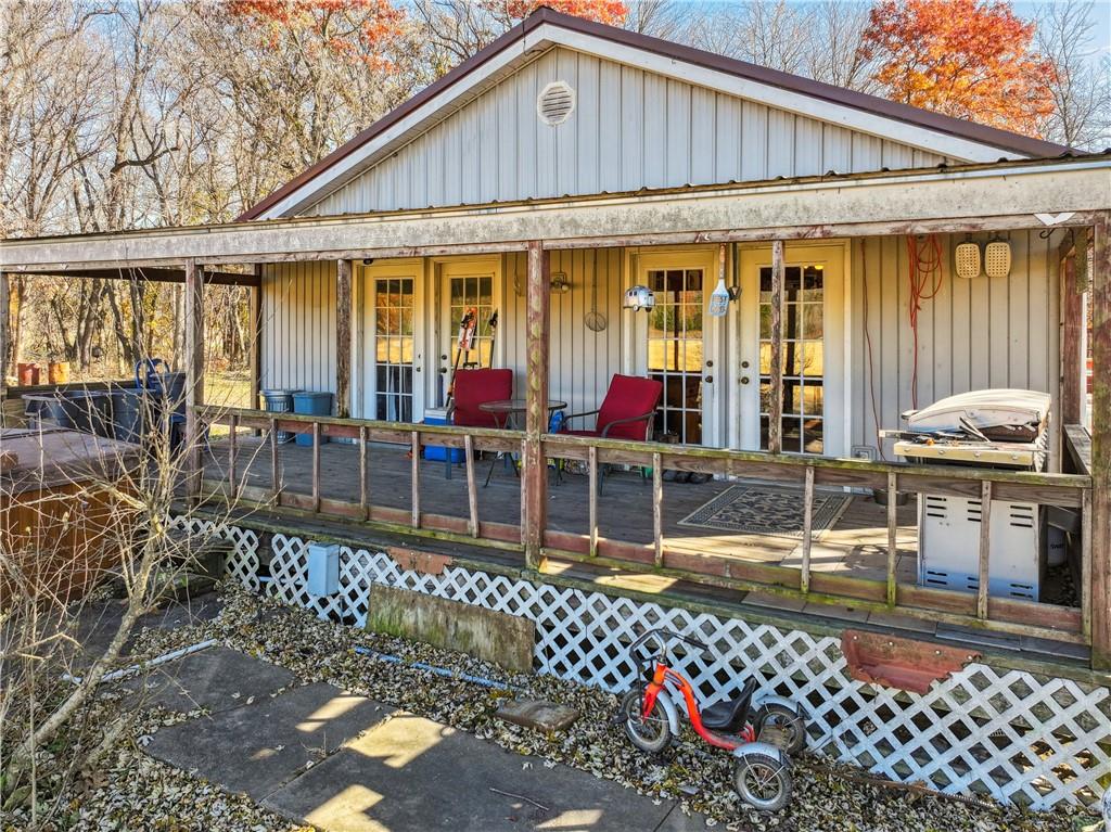 This inviting property offers comfort, space, and a peaceful country setting just one mile from town. The home features an open floor plan, pellet wood heat, and electric A/C for efficient year-round living. With 3 full bathrooms and 4 bedrooms, one is a non-conforming bedroom in the walkout basement, there is plenty of room for family, guests, or flexible use. Outdoor living shines here, with a 900-square-foot wraparound deck on two sides and a covered deck on the north side, creating several great spots to relax and enjoy the view. The property is horse-ready with a fenced paddock, and mature trees add privacy and charm throughout the acreage. Inside, the primary suite features a spacious custom shower with a rain shower head. The main level includes two full baths for convenience. The walkout basement features a large family room with a pellet stove, ideal for cozy evenings or gatherings. A 22x40 detached three-car garage and shop with electric provides excellent storage and workspace options. This property offers a balance of country living and quick access to town. It is ready for its next owner to make it their own.