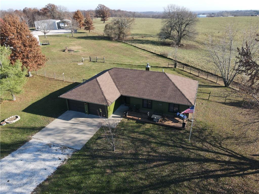 Discover PEACEFUL COUNTRY LIVING with unbeatable convenience in this well-maintained 3-bedroom, 2 full bath Ranch home set on 3.2 beautiful acres. Enjoy true one-level living, an inviting layout, and endless outdoor possibilities—perfect for a hobby farm, projects, toys, or creating the ultimate family backyard. *Home Features~ Spacious Primary Suite with an ensuite Bathroom and Large Walk-in Closet Cozy living room Fireplace Large windows that fill the home with Natural Light Front Deck ideal for morning coffee + Back Patio for relaxing evenings 2-car garage plus a Storm Shelter for peace of mind! *Updates & Improvements~ Newer roof & gutters Newer water heater, microwave, stove, and dishwasher Fresh Exterior Paint *Property Highlights~ Large barn with lean-to—great for equipment, animals, or storage. Open space for gardens, animals, 4-wheelers, or whatever you imagine. Picture-perfect views to enjoy both sunrises and sunsets. A rare blend of Country Charm and Modern Convenience! Located in desirable Johnson County with a Prime LOCATION!!! Only 3 miles to Hwy 50 8 miles to Lone Jack 20 miles to Lee’s Summit & Blue Springs 24 miles to Warrensburg With a Bonus of Paved roads and a private drive. This is a MUST-SEE property with Endless Potential—don’t miss this Wonderful Country GEM!!!