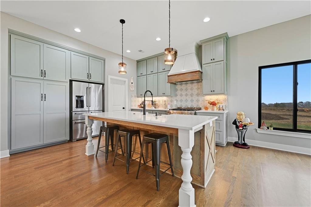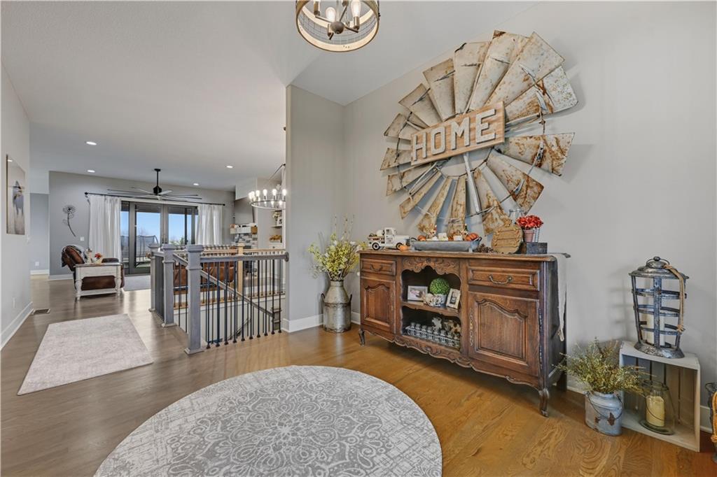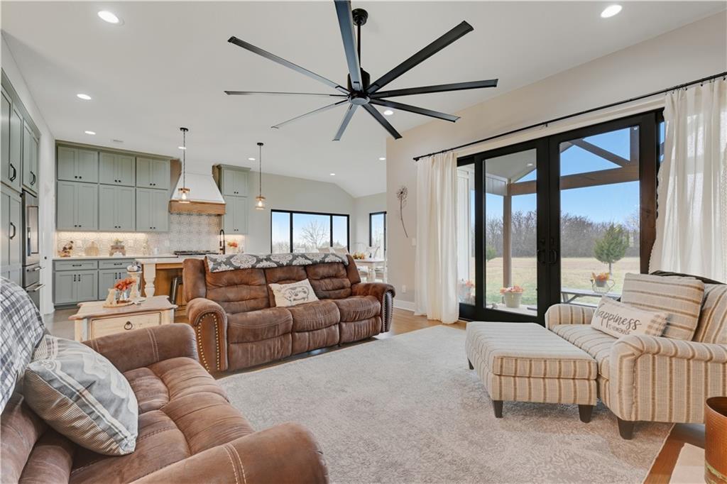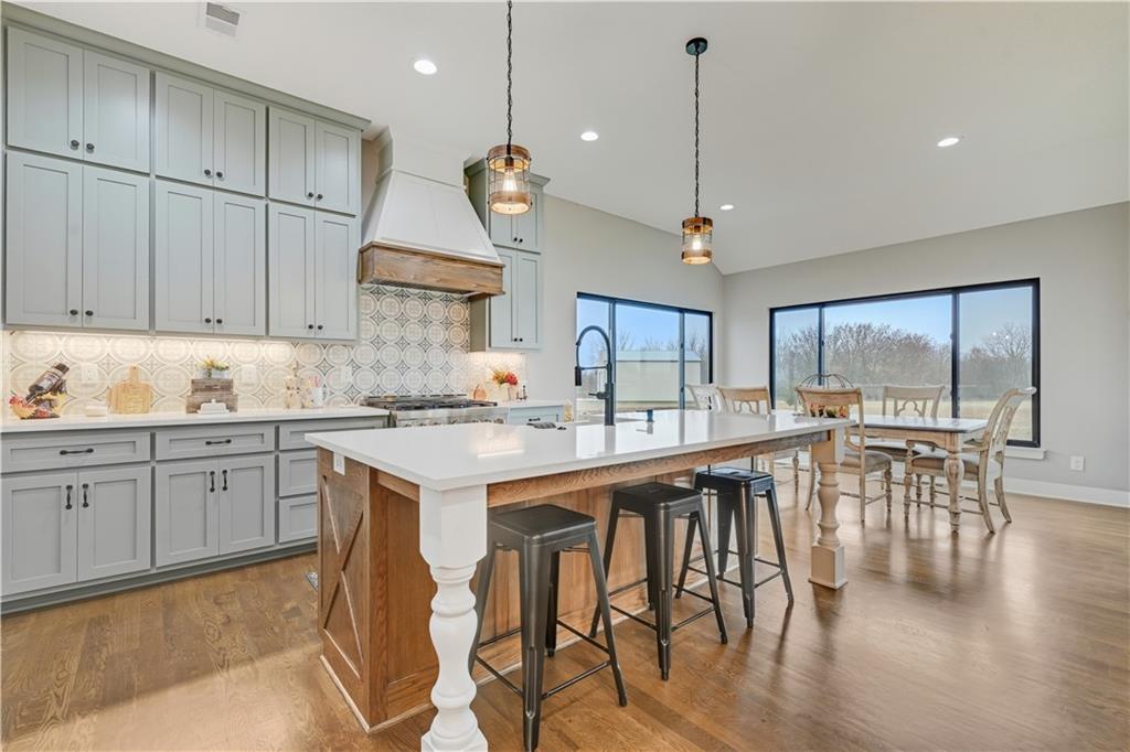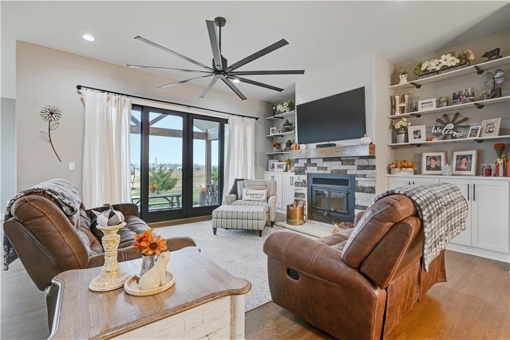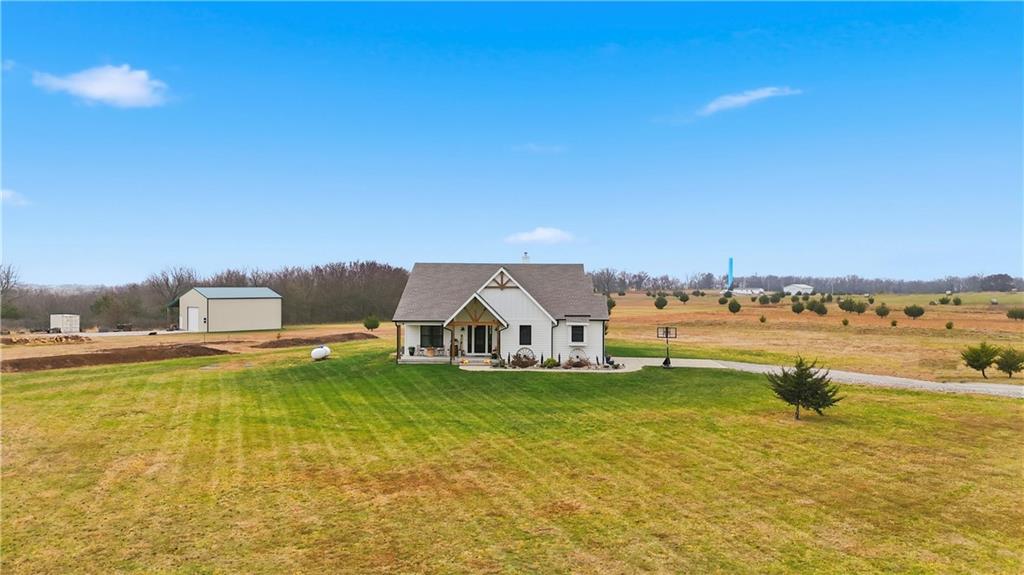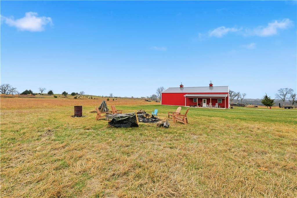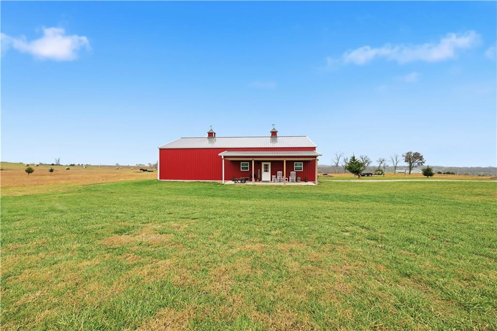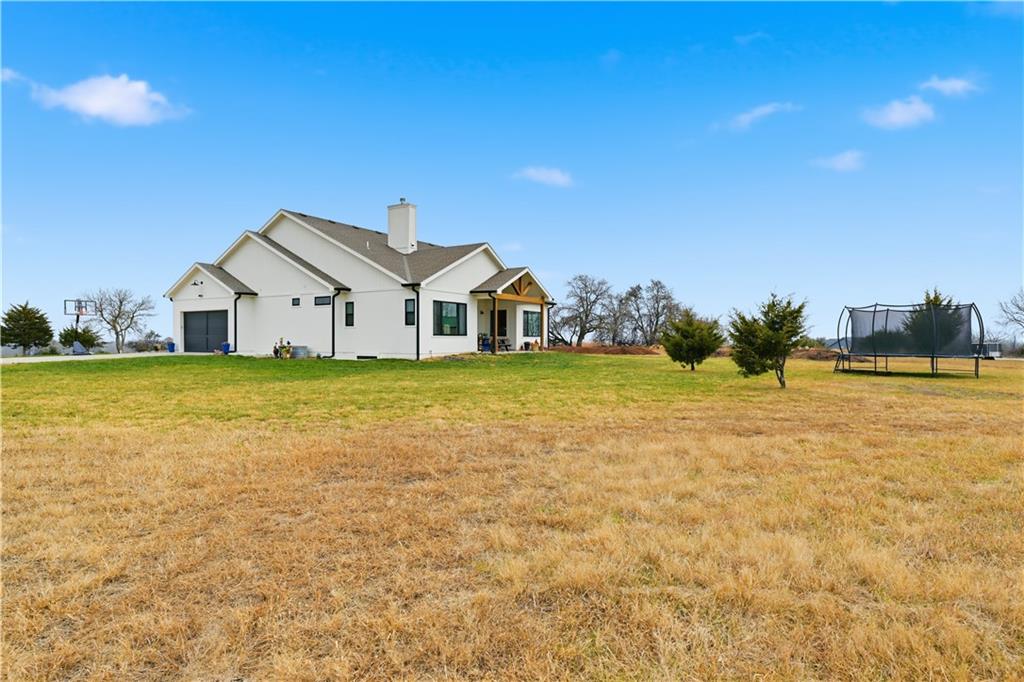 Your Dream Home Awaits! This gorgeously appointed 4 Bedroom 3 and 1/2 Bathroom Reverse Story 1.5 is better than NEW! Your Future Home offers an open concept main level with a grand foyer, second bedroom/office, Chefs Delight Kitchen, Dining Space, Great room, Primary suite, Laundry room, mud room and oversized garage. The Charming kitchen offers a HUGE walk-in Pantry, 6ft island with Quartz countertop, loads of storage, 36" Gas stove, and Painted Custom cabinetry. Your Great room offers a wood burning fireplace and double sliding doors that open to the covered porch to take in your country views. Enjoy retreating to your spacious primary suite where you can relax in your walk-in shower with custom tile. Your magnificent walk-in closet connects conveniently to the laundry room. Head down stairs to your sizable recreational room that connects your exercise room, bonus room, and 2 additional bedrooms joined by a Jack & Jill bathroom. Need storage? You've found it. The amount of storage this home offers is substantial. Enjoy the space your acreage offers for you to enjoy. Fish in your 1/3 acre pond, store your toys in the 40x60 shop/outbuilding with concrete & electricity or turn it into a barn for horses or other animals, start a large garden, your options are almost endless. Easy highway access. Only 14 minutes from Louisburg for shopping and restaurants, 8 minutes from Linn Valley Lakes, and 21 minutes La Cygnes Lake. Tour this home today before you miss out! Professional photos taken tomorrow.