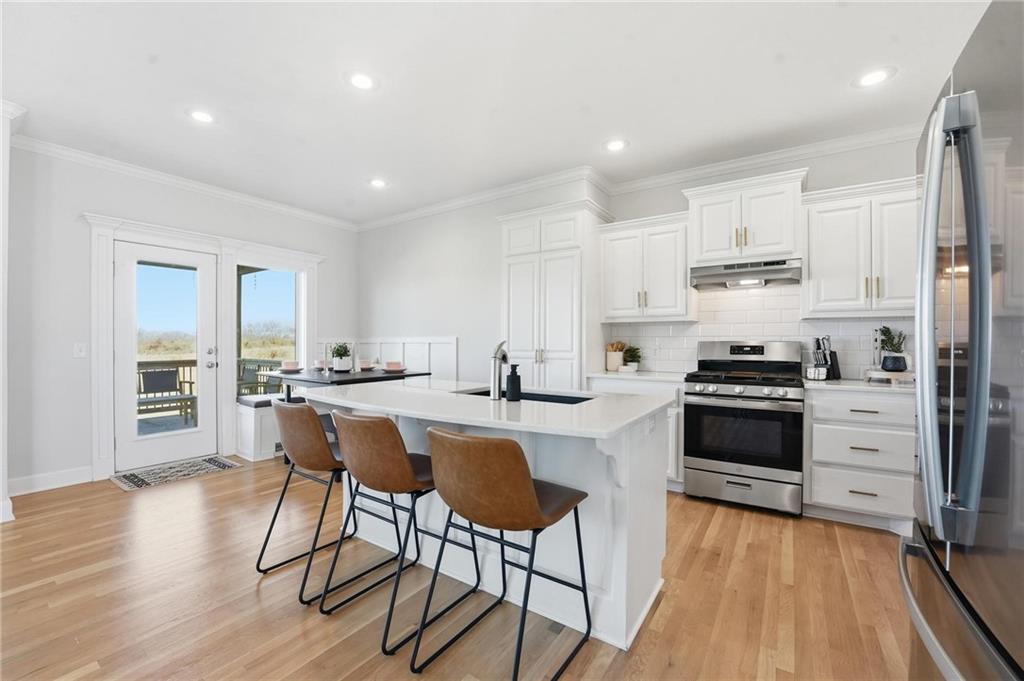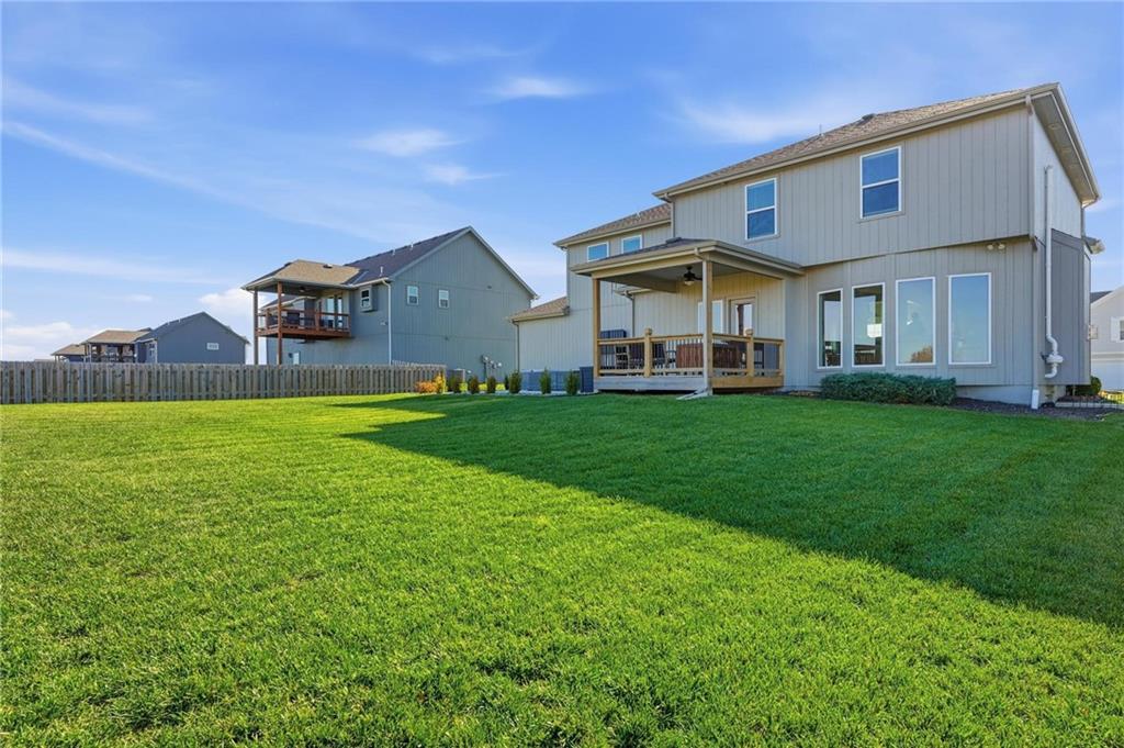 Pristine and "like new", nestled against farmland-this spotless 2 story has it all! Open main floor with 2 story entry, gas fireplace, mud room, built-in banquette w/custom table, walk-in pantry, and wood floors throughout. Expansive windows showcase the peaceful view and outdoor living space featuring a covered wood deck and new 22x20 patio w/weatherproof covered TV. The roomy 2nd floor offers walk-in closets, feature walls, main bath with double vanity, and laundry room. Retreat to the private primary bedroom with soaking tub, separate shower, double vanity, and walk-in closet. The possibilities are endless in creating your dream space in the lower-level w/bath stub and Egress window. Quietly located "off the beaten path", yet close access to freeways and shopping. This is one has it all!