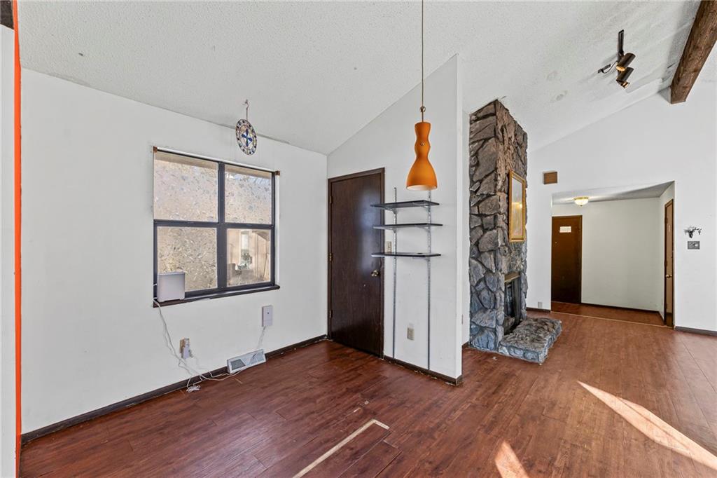 Cozy and full of character, this 2 bedroom, 2 bath ranch at 8801 E 109th is ready for its next chapter. Step inside to a vaulted great room with exposed wood beams, stone fireplace, and wood-look floors that give the space a warm, inviting feel. Large windows and a sliding glass door let in tons of natural light and walk out to the backyard. The spacious eat-in kitchen offers abundant cabinet and counter space, plus room for a dining table or island and sight lines back toward the living area—perfect for everyday living or entertaining. Down the hall you’ll find a comfortable primary bedroom with its own bath, a second bedroom, and an additional full bath. Outside, mature trees and a generous yard provide space for pets, play, or a future patio or garden. Conveniently located in south Kansas City with quick access to shopping, dining, and highways, this home is a great opportunity to move in now and add your personal updates over time.