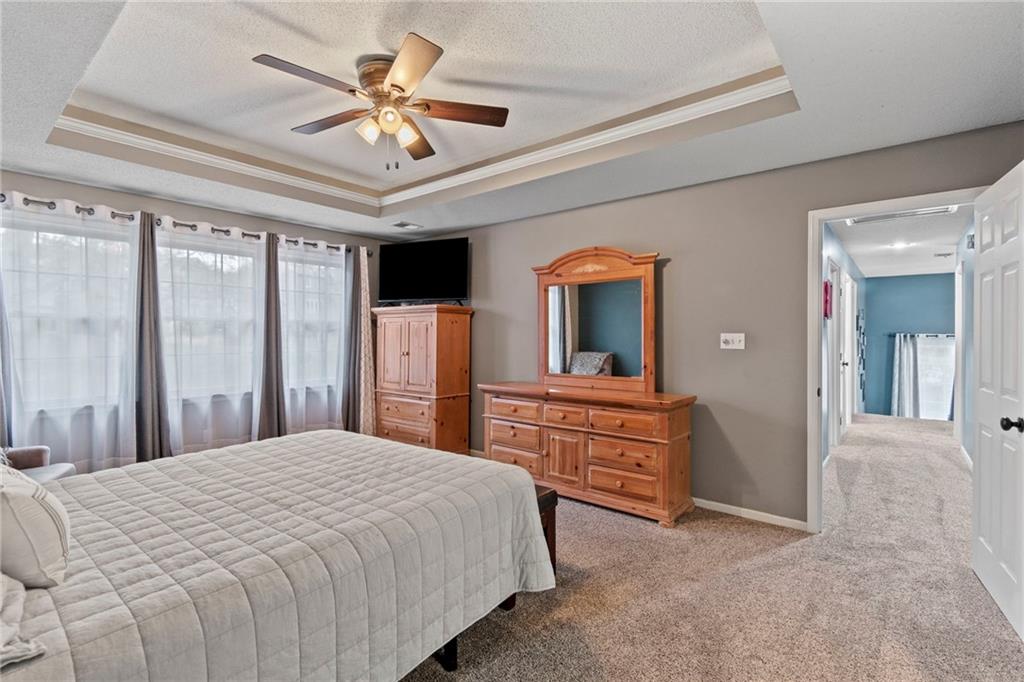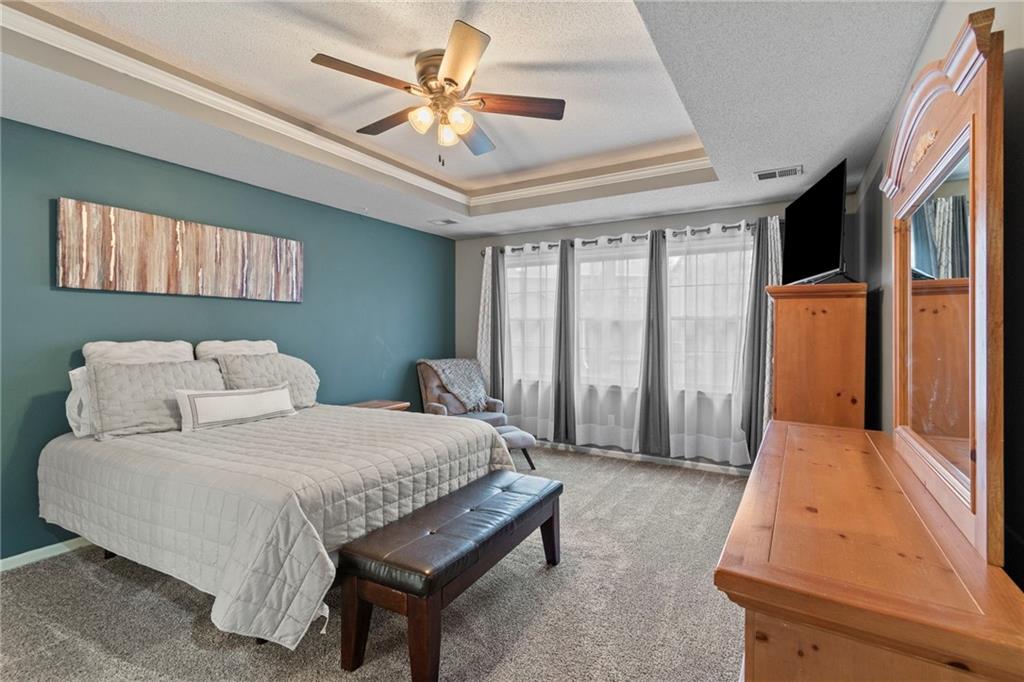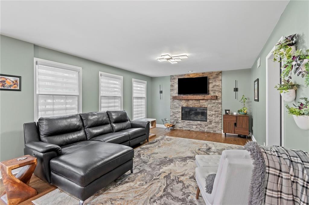 WELL MAINTAINED 2-STORY ON A QUIET TREE LINED STREET WITH A FRONT PORCH FOR RELAXING. Formal Dining Room just off the entry and beautiful hardwood floors throughout the main level. Open floor plan with kitchen/great room updates in 2020. Added new hardwoods, granite countertops, new island and remodeled 1/2 bath and off-kitchen laundry room with luxury vinyl tile. Newer stainless steel appliances. New stone and mantel on fireplace. Custom blinds throughout first floor. Upstairs has 4 bedrooms with an oversized Master. Master Bath has double bowl vanity, Jetted tub, and large Walk-in closet. Beautiful large window in second bedroom could make a sun-filled office space! Tile and carpet in finished basement with 1/2 bath and a wet bar for entertaining. Large storage room adds to the basement space. Step out of the kitchen onto a peacefully landscaped backyard with patio and a HUGE side yard. NEIGHBORHOOD HAS TWO SWIMMING POOLS AND PLAY AREA WITH PLAYGROUND. Large picture windows with views of the beautiful treed lot throughout the home! Convenient access to highways, dining and shopping and located in award winning Liberty School District. This home is move-in ready and it shows!!!
