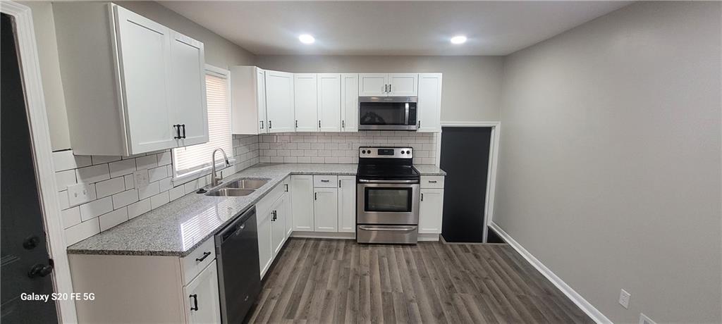 Remodeled to perfection. This home is centrally located off several major highways, public transportation and popular attractions. Come sit on the cozy deck and enjoy the country style feeling on this elegant home. The front room area is very inviting and offers an open and spacious floor plan. This beauty also offers new roof, gutters, light fixtures, windows, reset lighting in the front room area as well as kitchen area. The kitchen has been totally renovated with granite counter tops, stainless steel appliances:(Refrigerator, Stove, microwave and dishwasher). Fresh interior/exterior paint throughout, remodeled bathroom, laminate flooring throughout the home, new carpet /ceiling fans in all bedrooms, cordless blinds and rebuilt deck on the front porch.