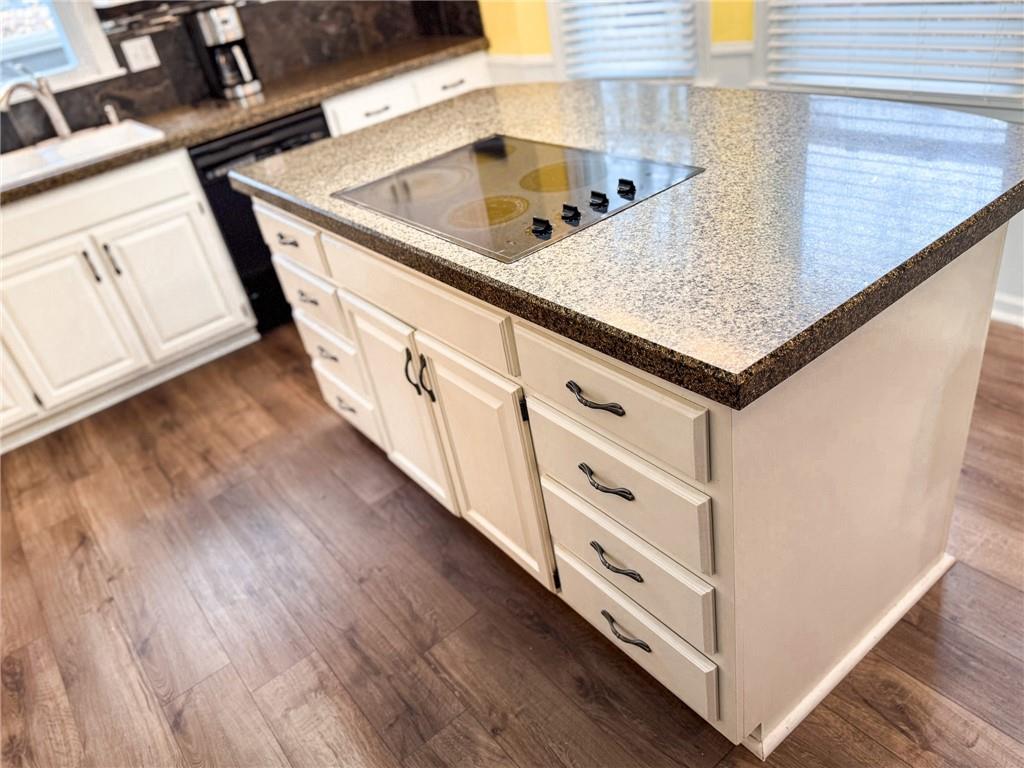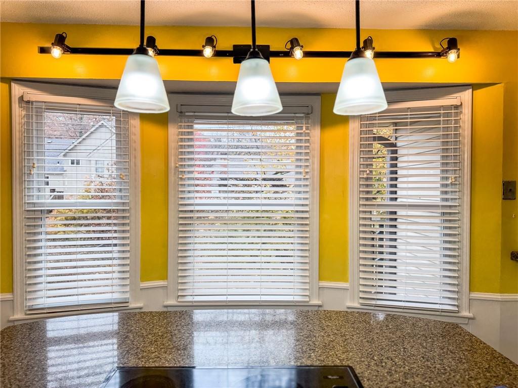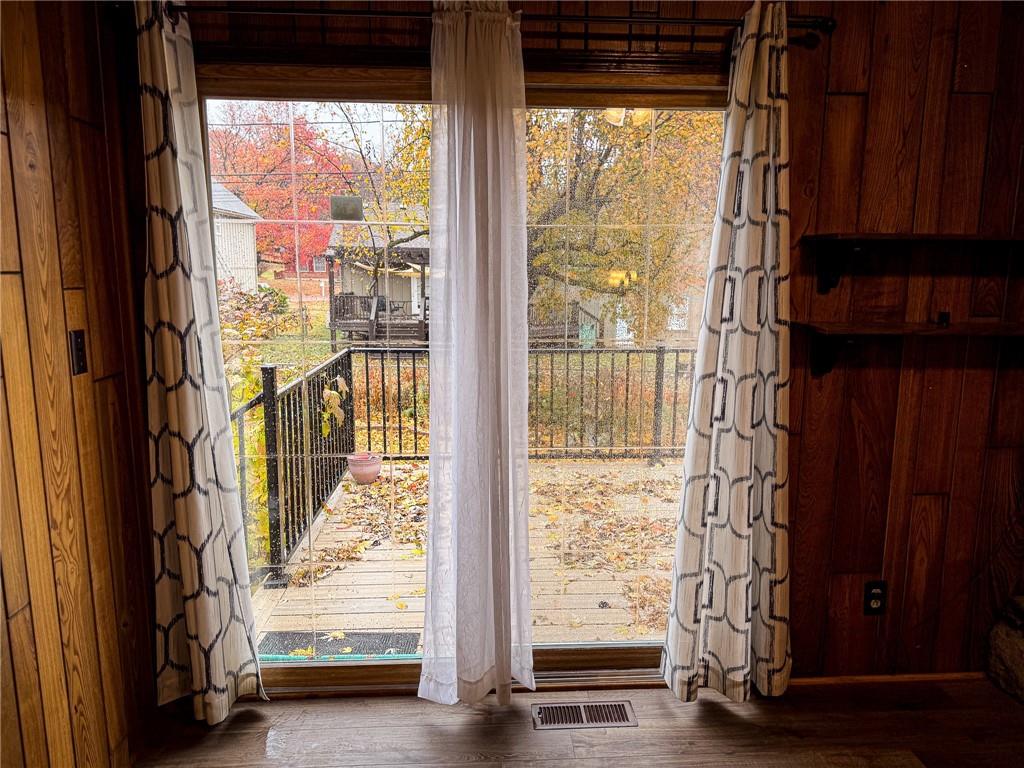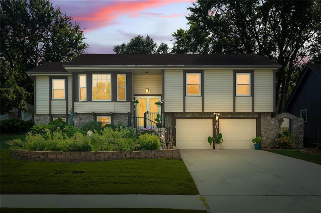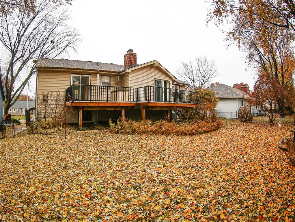 Awesome house in great neighborhood, many updates, with a playful retro vibe. Kitchen and dining space with TONS of cabinets, large island with cooktop. Main level has plenty of living space, great room with gas fireplace and sliding door to newer composite deck, formal living room, then there is the primary bedroom with slider door access to back deck, updated bath with large walk in shower, also convenient walk in closet that passes into an office or nursery, with another bedroom and hall bath with whirlpool tub, downstairs garage level has great retro recreation room with wet bar, mini fridge, guest bedroom and private half bath, utility room has a safe/storm room.Furnace & AC almost 3 yrs. Garage has large cedar closet. House has extensive landscaping front and back. Fully fenced back yard. Deck runs across back of house, slider doors in great room AND primary bedroom, composite decking and metal railing. Interesting stone features on front of house.