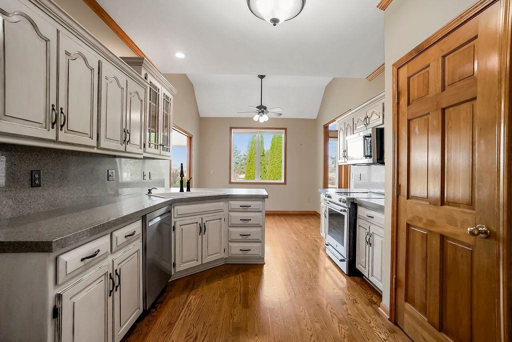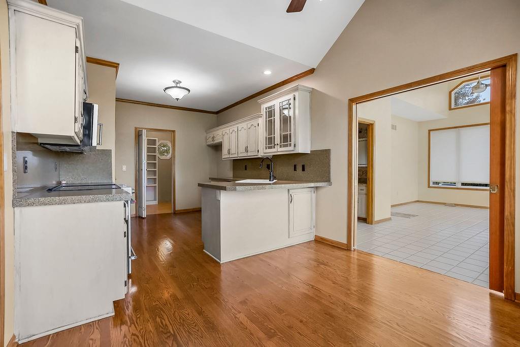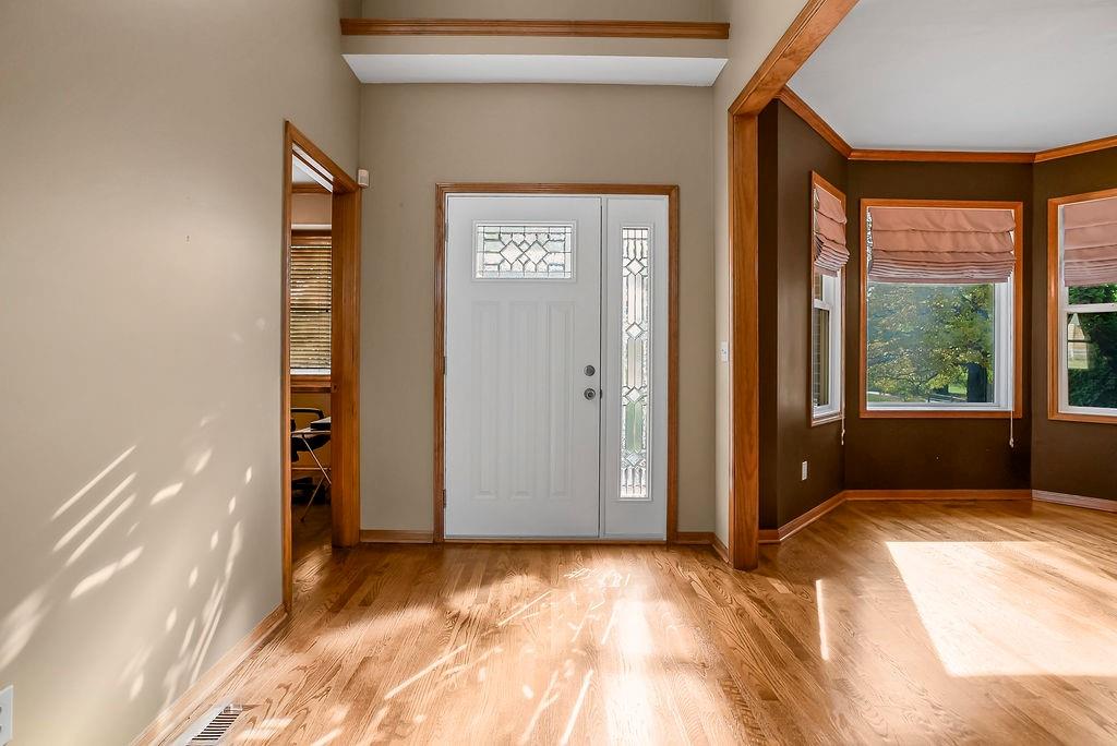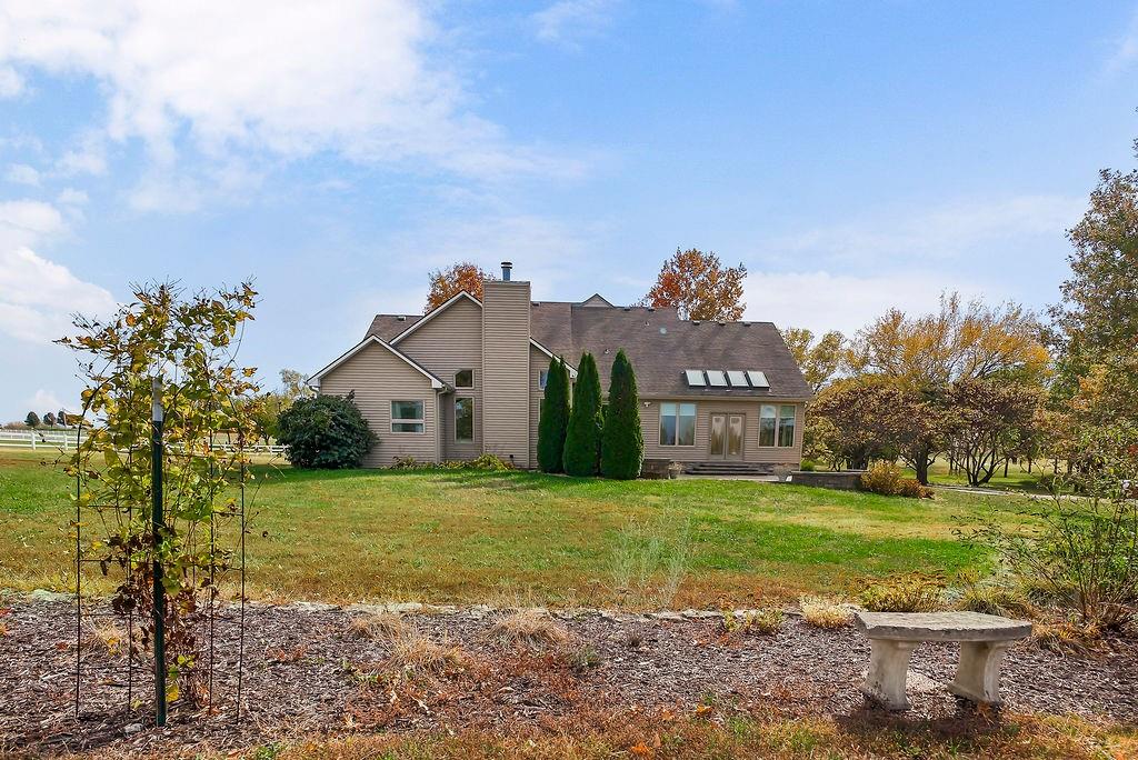Peaceful Living on 10.68 Acres with Endless Possibilities! This beautifully updated true 1.5 plan featuring 4-bedrooms, a main floor office, 2.5 bath, attached 2 car garage and additional detached 2 car garage. Main level living with thoughtful updates, modern comforts, and wide-open space to make your own. Step inside to find newer hardwood floors throughout, a vaulted living room ceiling with custom-built-ins, and a brick fireplace. Home features an eat-in kitchen with high-end KitchenAid stainless steel appliances, a walk-in pantry, and an adjacent laundry room for added convenience. The main level includes a spacious primary suite with walk-in closets and jetted tub. Light, bright and open spacius formal dining room. Second bedroom / office with custom built ins. Bright and airy sunroom with tile floors, vaulted ceilings, and a half bath walks out to paver back patio with fire pit. Upstairs, you’ll find three generously sized bedrooms, all with walk-in closets and a full-size bathroom. The huge unfinished basement offers incredible potential to add additional living space. Home has active camera and security system in place. Additional updates include new vinyl siding and windows, Class 4 impact-resistant roof (8 years old), a 2yr old hot water heater, & a 6-year-old A/C unit. With over 10 acres of land, there’s room to build, expand, have horses, etc. All asphalt roads and driveway as well1 The opportunities with this home and property are endless!