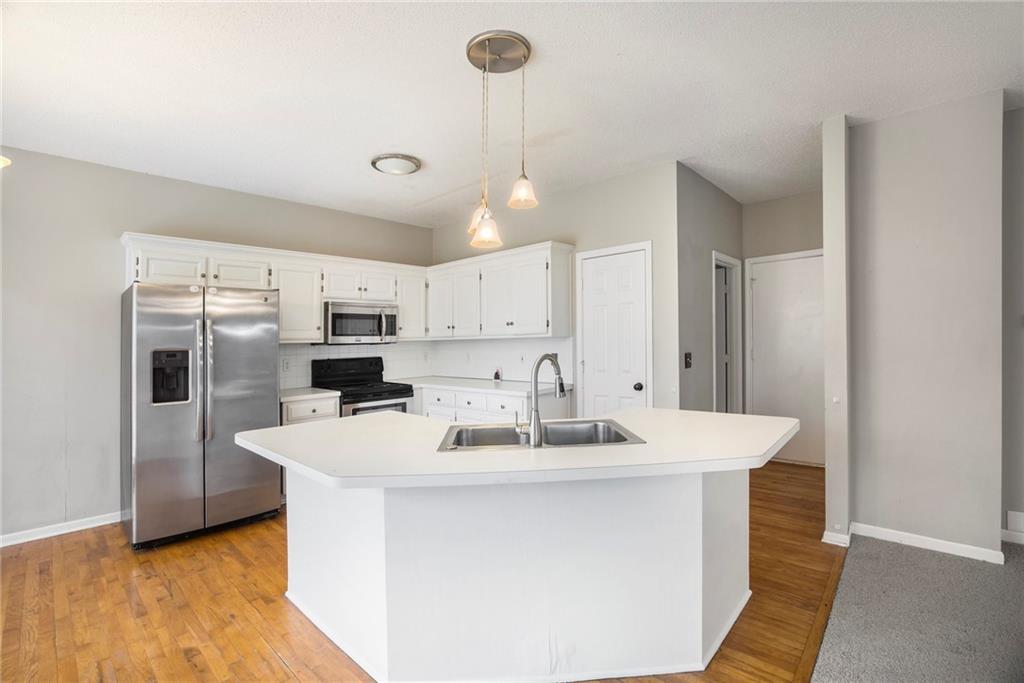 Welcome to this charming 4-bedroom, 2.5-bathroom home in the desirable Olathe! This property offers charm not often found in newer homes. The main level seamlessly connects the living room with a built-in surrounding mantle fireplace to the kitchen, which boasts wood floors, stainless steel appliances, and the dining room. The finished basement is designed for entertainment, including a bar area that makes it perfect to serve as a home theater or game room. All bedrooms are located on the second floor. The primary bedroom includes a spacious ensuite with dual sinks, garden tub and walk-in shower. Enjoy the outdoors on the homey front porch overlooking the neighborhood. The location is excellent, with easy access to I-35, KU's Olathe Medical Center, and Garmin. You'll also be in close proximity to numerous restaurants, shopping, services, and public schools. Schedule your showings today!