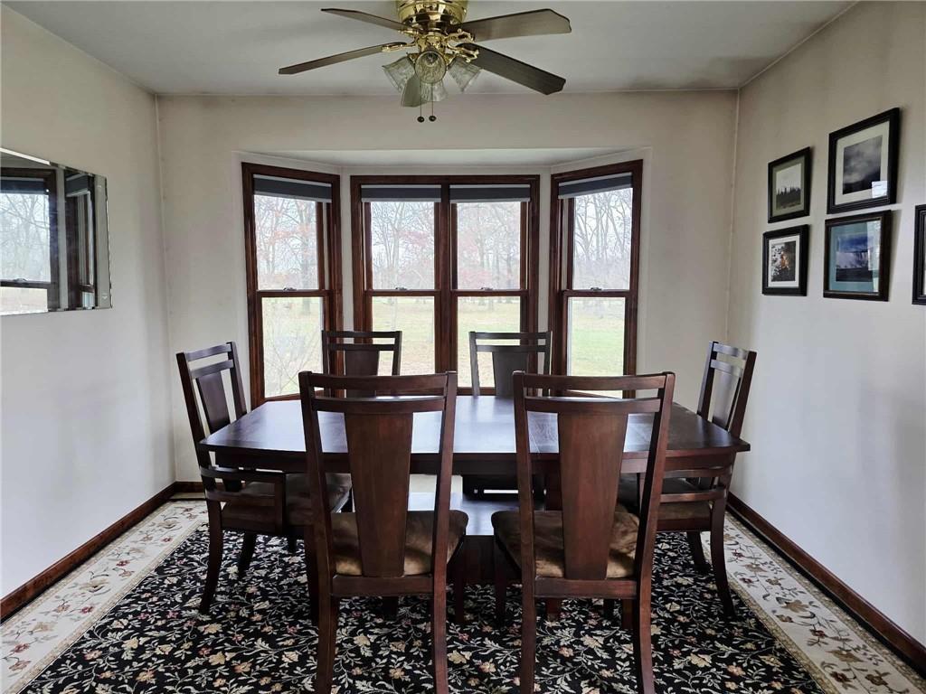 This is a once-in-a-lifetime opportunity to own a unique property! This beautiful all-brick newer style home features a large back porch that overlooks Mine Creek, which flows through the middle of the property and sits just off a blacktop paved road. The home also features a large open living/dining space with a brick wood-burning fireplace. Additionally, there are 4 beds, 2.5 baths, a walkout fully finished basement that features a second wood-burning stove, an additional non-conforming bedroom, and a mini kitchen. All bedrooms feature large closets, the kitchen has granite countertops, and all appliances stay with the home. The attached 2-car garage flows into the laundry/kitchen area. The land comprises approximately 40 acres of secluded prime hunting land, approximately 75 acres of tillable land, and 12 acres of fenced off pastureland with a large pond. The additional outbuildings include a 48x75 implement barn w/18ft lean-to off the east side, with a 15.5 beam height and a 24x80 shop with living quarters. This home does come with solar panels-No paying for electricity on this property. At this house, the power company pays you with the power you feed back in.
