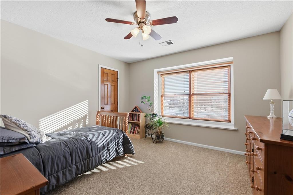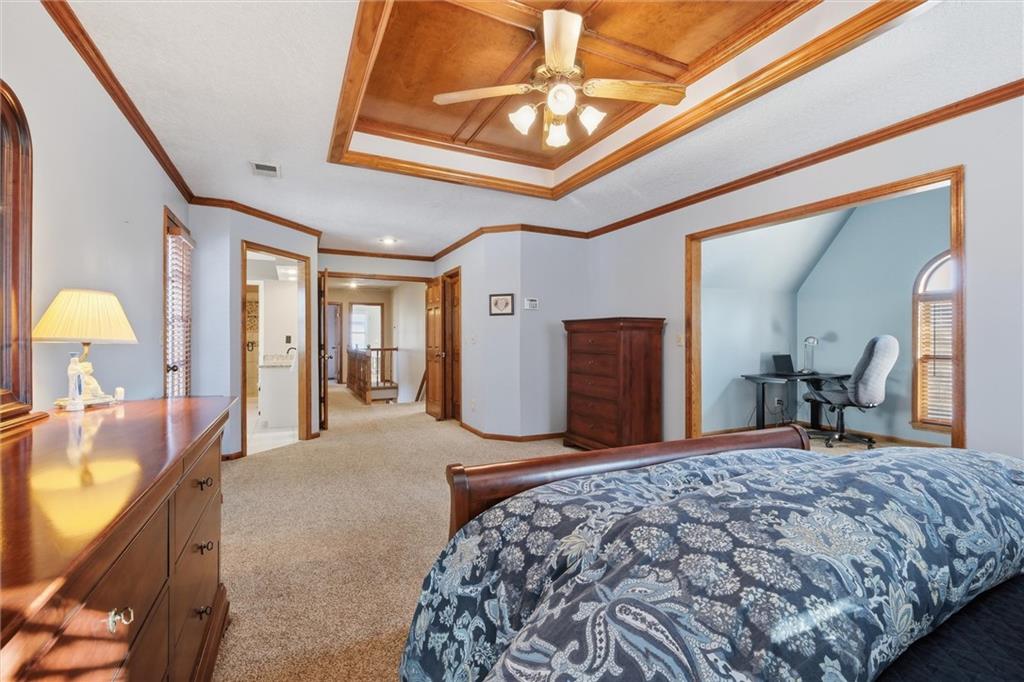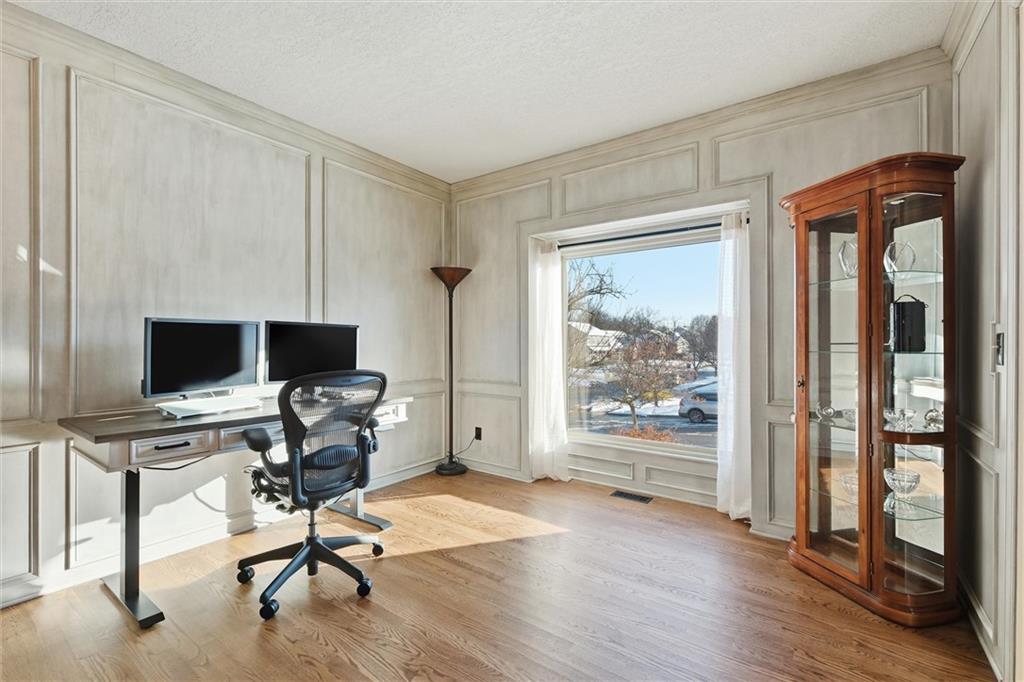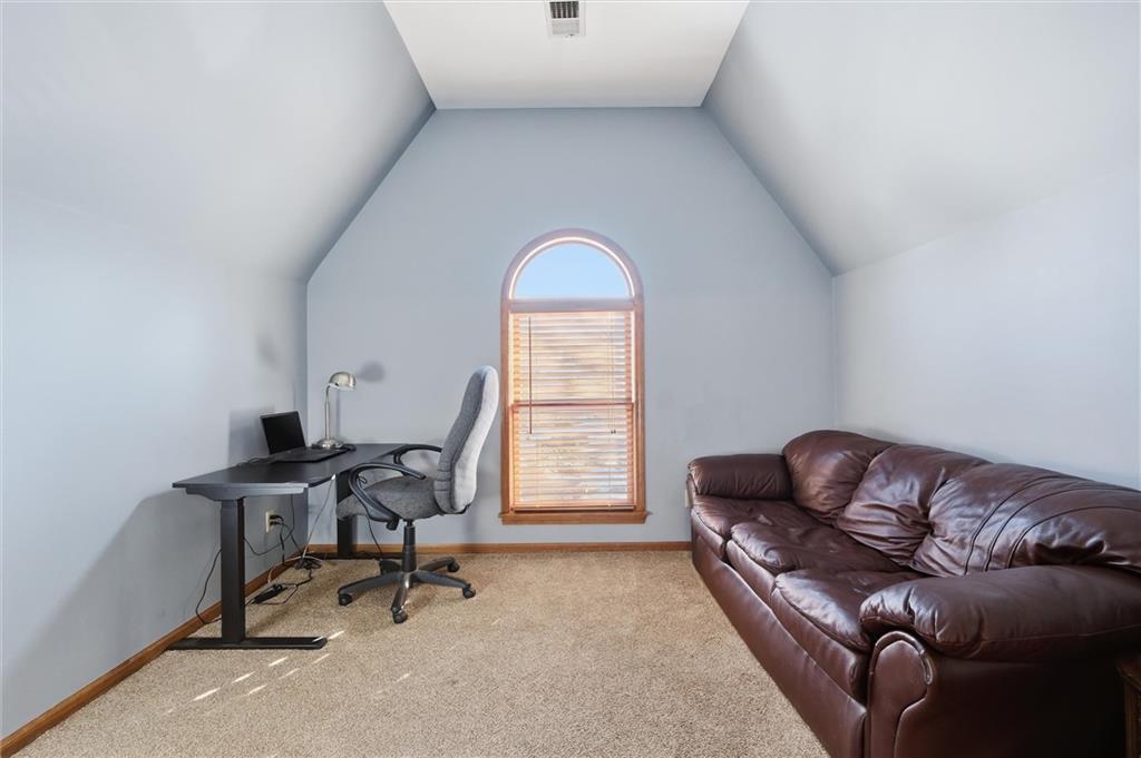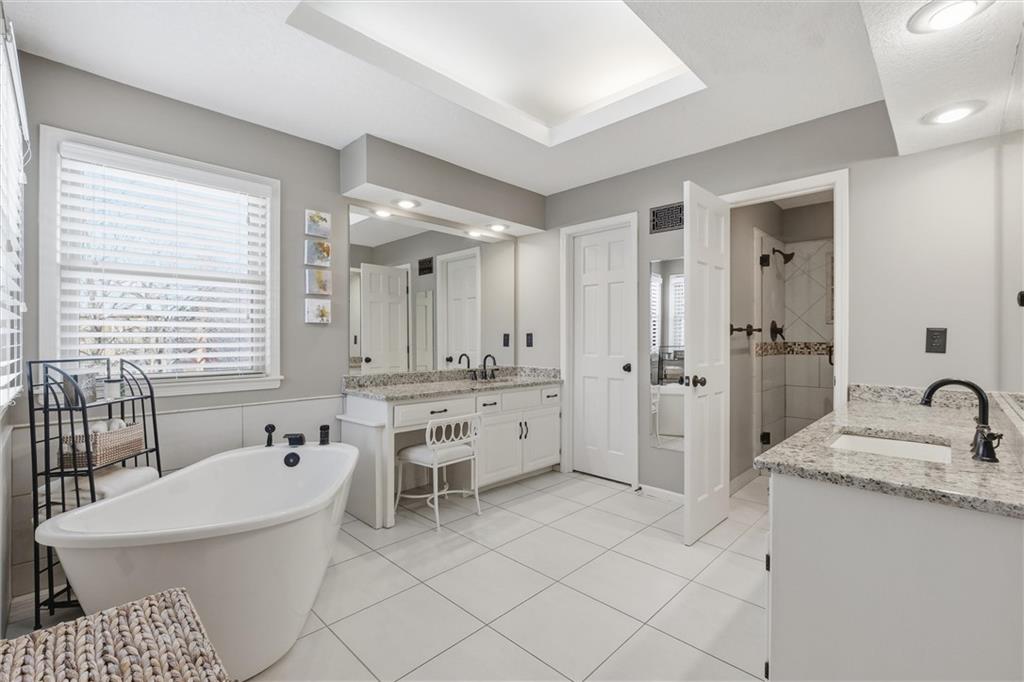 Discover this beautifully updated 2-story home situated on a treed corner cul-de-sac lot, offering exceptional space and functionality. The main level welcomes you with hardwood floors, fresh paint, and generous living spaces. The family room offers a cozy fireplace and built-in bookshelves. There are also a dedicated first-floor office and formal dining room. The updated kitchen boasts granite countertops, a pantry, and hardwoods, opening to a bright sunroom. Upstairs, the spacious primary suite impresses with vaulted ceilings, two walk-in closets, a private sitting room and its own balcony. The luxurious, updated primary bath features tile and granite finishes, a free-standing tub, and a separate shower. Three additional bedrooms share an updated hall bath with stylish tile and granite. Offering both a 2-car front-entry garage and an additional 2-car tandem side-entry garage with basement access, this extra space is perfect for hobbyists, storage, or extra vehicles. The partially finished basement includes stained concrete floors and is currently used as a workout room. Outside, enjoy a fenced yard ideal for pets, play, or gardening. Major updates bring peace of mind, including a new roof (1 month old), new windows, fresh exterior paint, new gutters and newer HVAC system. This well-maintained home on a private cul-de-sac corner lot offers space, updates, and a flexible floor plan—move-in ready and waiting for its next owner!