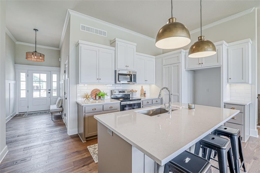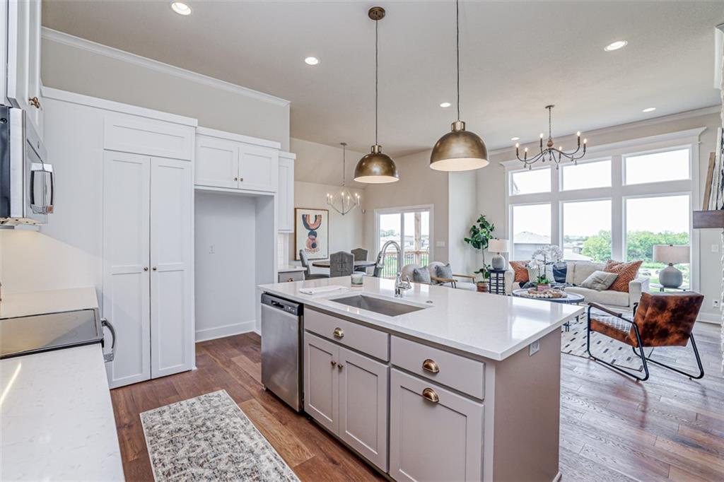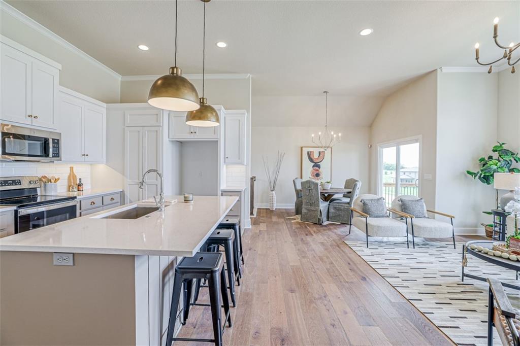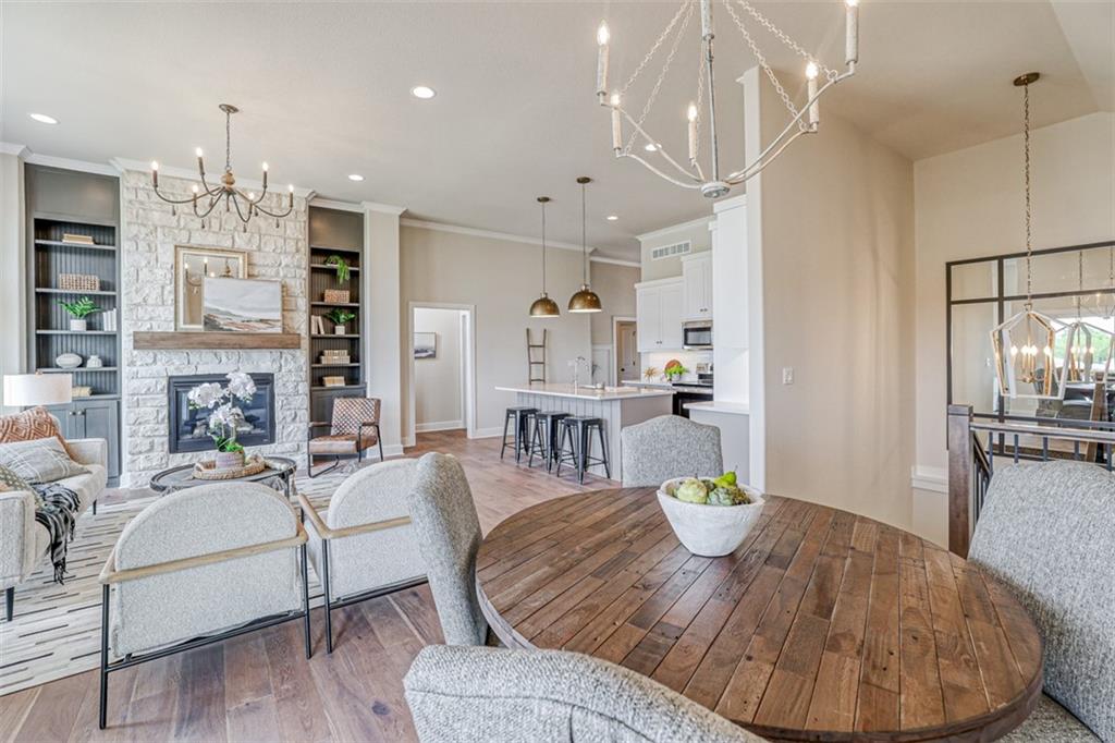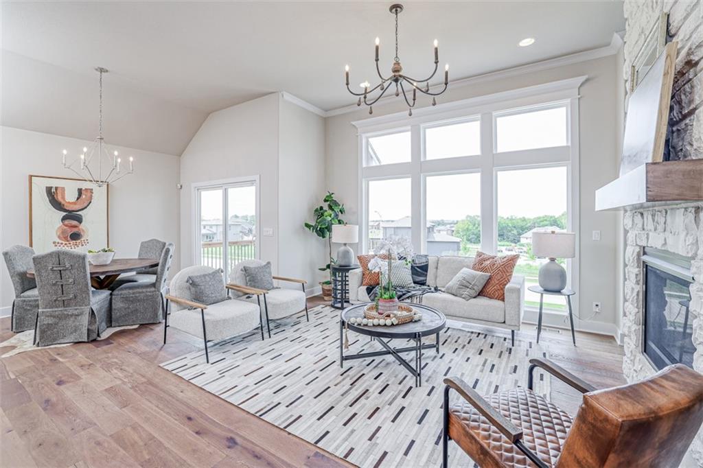 The award-winning and highly desired Stratford plan by SAB Homes will be move-in ready late February to early March on Lot 85 in The Enclave at Boulder Hills. This beautifully designed reverse 1.5-story villa offers 3 bedrooms and 3 baths with an inviting open-concept main floor. The great room features a cozy fireplace and a wall of windows for natural light. The covered patio is perfect for enjoying all four seasons. The kitchen includes an island, custom cabinetry, a pantry, and an adjoining dining area for easy entertaining. The main-floor primary suite offers double vanities, a walk-in shower, and a generous walk-in closet. Completing the main level are the laundry room and a second bedroom with full bath. The finished lower level includes a third bedroom, an upgraded shower bath, and a spacious family room. The exterior features lap siding and stone accents. Enjoy a carefree lifestyle in this maintenance-provided community with lawn care, irrigation service, and snow removal for $198/month. Annual $900 HOA includes access to resort-style amenities: pool, fountains, outdoor kitchen and fireplace, pickleball court, putting green, clubhouse, and playground. The neighborhood sits directly across from Heritage Park.