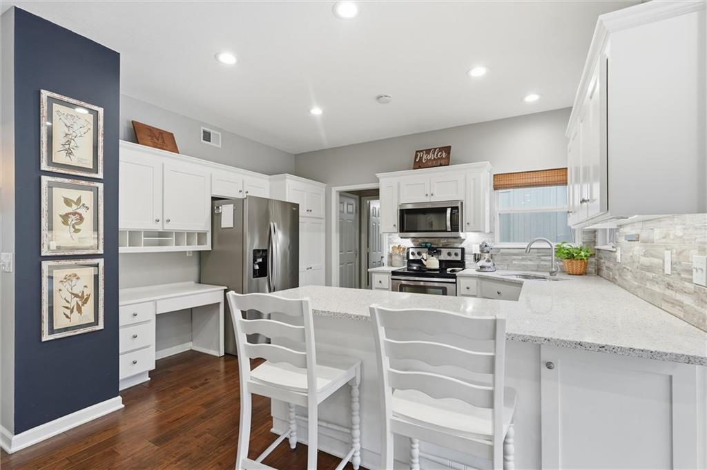 Welcome home to this Shawnee stunner! This 4-bedroom, 2.5-bath gem is truly turn-key and filled with modern updates both inside and out. Step inside to warm hardwood floors on the main level, fresh interior paint colors, and a bright, inviting layout perfect for everyday living and entertaining. The updated kitchen flows seamlessly into the living and dining spaces, while the finished basement offers bonus room for a play area, home office, or movie nights. Upstairs your will find four bedrooms and two bathrooms. The primary suite is over sized with a nook perfect for home office, an updated bathroom and large walk-in closet. Major upgrades give you peace of mind for years to come: new exterior paint, front door, front windows (2025), new roof (2024), new water heater (2023), new furnace/HVAC (2022), plus a new patio, fresh concrete work, and exterior shed for extra storage and outdoor enjoyment. With its flawless condition, modern finishes, and unbeatable location—this home is ready for you to settle in and make it yours just in time for the holiday season. Welcome home! ????