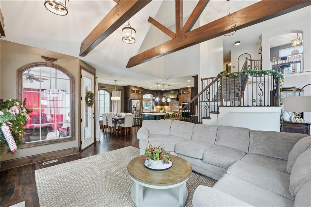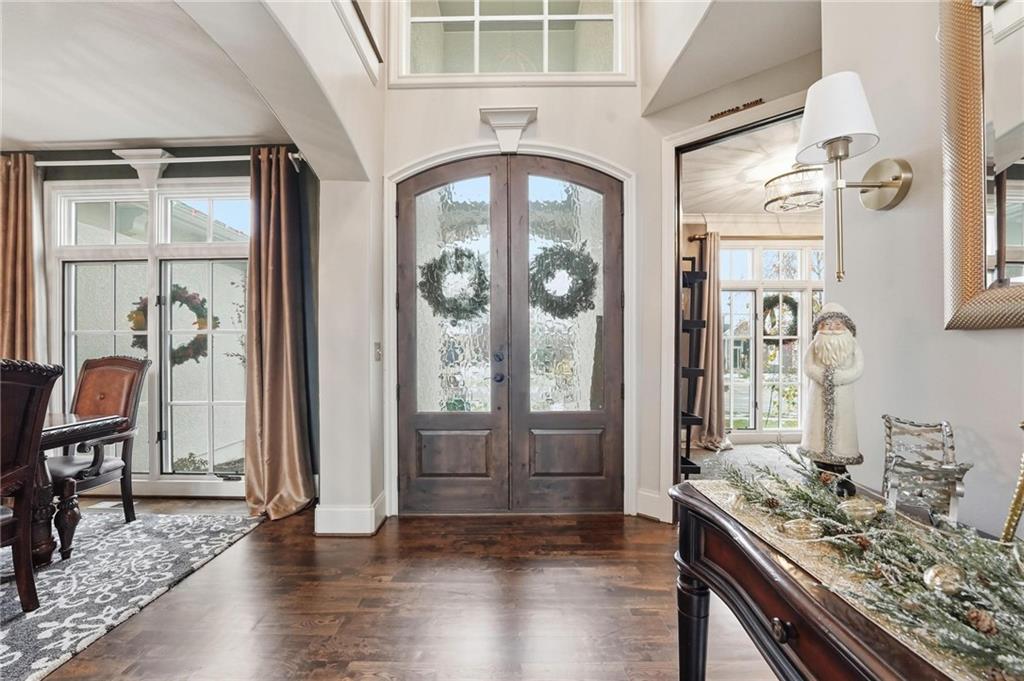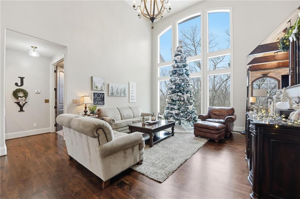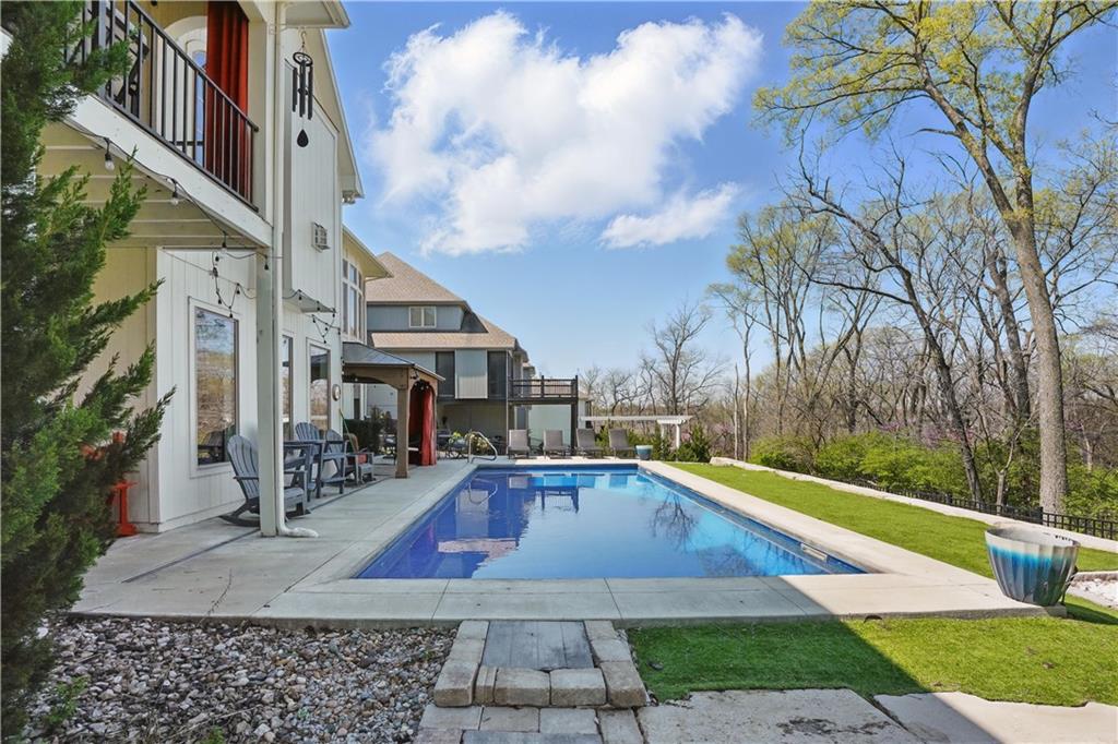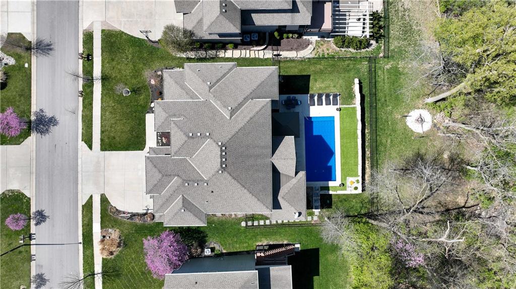 This gorgeous home delivers luxury living with a backyard that feels like a private resort. Even in the middle of winter, the pool looks like it’s just counting down the days until it becomes the star of the show. Picture sunshine, music and float filled afternoons coming soon, all framed by a beautifully kept yard and inviting outdoor spaces that make summer feel endless. Inside, soaring windows pull in natural light and highlight the wooded backdrop, giving the living areas an elevated and welcoming feel. Rich hardwood floors flow through the main level, connecting a spacious living room, elegant dining room and a beautiful kitchen with granite counters, walk in pantry, large island and an inviting eat in area. The hearth room adds another cozy gathering spot with its fireplace and treetop views. The primary suite brings comfort and style with a generous bedroom, walk in closet and a spa inspired bath with double sinks, soaking tub and a walk in shower. Upstairs bedrooms offer great space and storage with a Jack and Jill setup between two of them, plus a private full bath for the third. The walk out lower level is built for fun with a wide open rec room, dedicated TV room, bonus room and a wet bar that makes hosting easy. A covered patio overlooks the pool, the landscaping is beautifully maintained and the setting feels tucked away while still keeping you close to everything. This high end home blends luxury, comfort and a future summer that’s ready to shine.