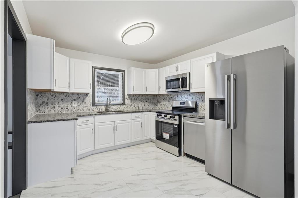 Stylishly renovated one-level living RANCH with a full, finished basement on a large, fenced lot just minutes from the stadiums! The open main level feels roomy and perfect for entertaining with an easy flow from the dining room to the fresh kitchen to the cozy living area with fireplace. Through a sliding glass door from the living room is a spacious all-seasons room where you can enjoy views of the scenic backyard year round. The beautiful kitchen is complete with granite countertops and new stainless steel appliances, and gleaming hardwood floors and a neutral color scheme throughout are the perfect canvas for you to make this space your own. Three bedrooms and a completely redone full bath complete the main level, and downstairs there is plenty more living space to enjoy in the full, finished basement. A rec area, home office, second living space and stunning second full bath offer plenty of space for remote workers, hosting games nights, a sprawling guest suite, or whatever best suits your lifestyle. The large, fenced backyard with shed is ready for backyard barbecues, gardening, playing outside and more. Welcome home!