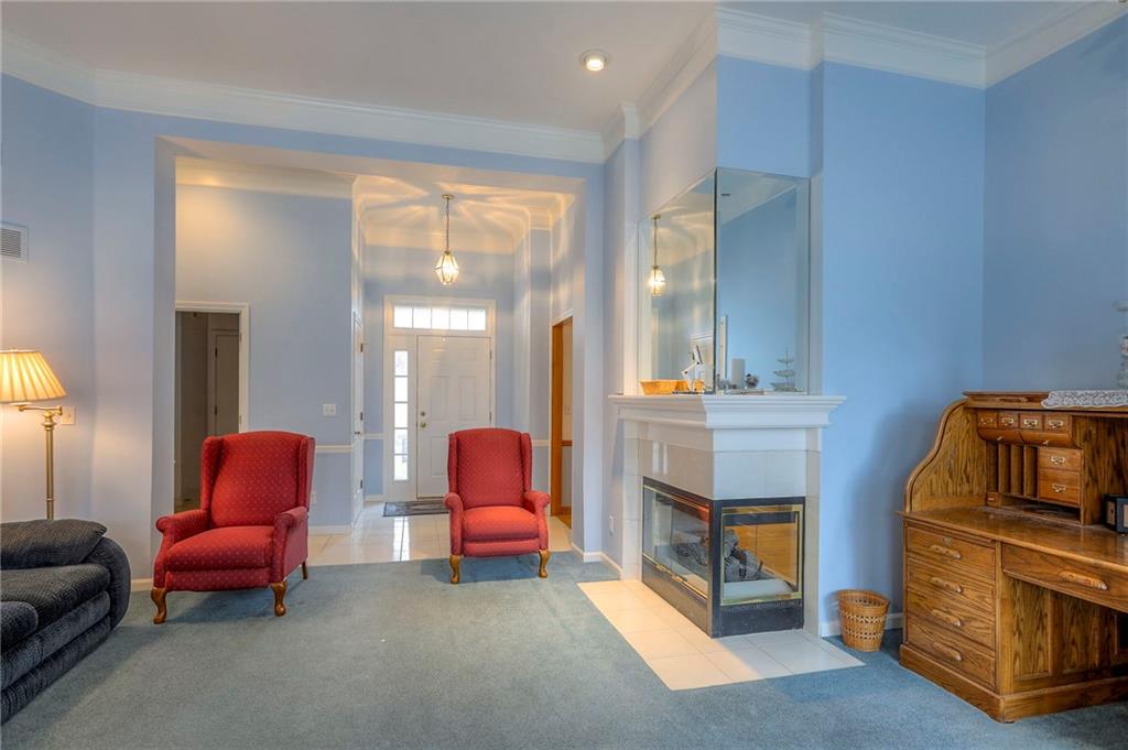 Welcome to a spacious home full of opportunity and charm, located in the maintenance provided community of Hawthorne Place. The main level features two bedrooms, allowing for comfortable one level living, along with inviting living and dining spaces highlighted by vaulted ceilings and a see through gas fireplace that creates a warm and open atmosphere. The primary suite is located on the main floor and includes a private bath with a skylight that fills the space with natural light. The kitchen offers generous cabinet space and a layout ready to be refreshed to your personal style. The finished lower level expands the living space with an additional bedroom, a full bath, and a relaxed hangout area ideal for guests, work, or recreation. Thoughtfully maintained and ready for cosmetic updates, this home offers low-maintenance living with flexible space and the opportunity to make it your own.