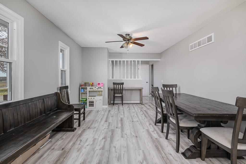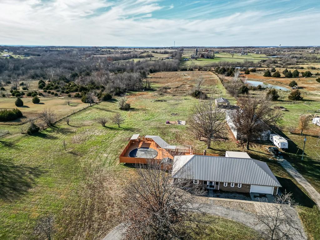 Back on the market- No fault of seller. 5-BEDROOM COUNTRY HOME ON 10 ACRES WITH A SHOP, BARN & ENDLESS POTENTIAL! If you’ve been searching for a spacious rural property with room to grow, places to work on hobbies, and plenty of outdoor space, this 1.5-story home offers all of that and more. Set on nearly 10 acres, it features a sunken living room with vaulted ceilings and a brick fireplace, a main-floor primary suite with walk-in closet and private bath, plus three additional main-level bedrooms and two more full baths for comfortable one-level living. The upper level includes a large 5th bedroom that could become two bedrooms if desired, along with generous attic space that can stay as storage or be finished later. The unfinished walkout basement adds even more opportunity with a workshop/3rd garage, a second sunken fireplace area, and room for future living space. Outside, you’ll enjoy an expansive deck, above-ground pool, and wide-open acreage ideal for animals, gardening, or recreation. The property also includes an impressive 80x40 shop with drive-through doors, heat, and a wood stove, plus a 30x24 barn for additional storage or livestock needs. Located on paved roads with easy access to nearby services, this property blends quiet country living with everyday convenience—an opportunity you won’t want to miss.